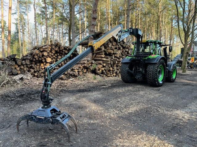 EX DEMO 2022 VALTRA N175 ACTIVE WITH MOHEDA CRANE AND INTERMERCATO BRASH GRAB. 1,079 HOURS (THIS MAY CHANGE IF USED). WRAPPED GREEN, OLIVE GREEN METALLIC UNDERNEATH. SPEED 50 KM/H. FRONT AXLE SUSPENSION. PUMP, VARIABLE DISPLACEMENT, OUTPUT 200 LITRES/MIN. FOUR VALVE PACKAGE + POWER BEYOND. FRONT LINKAGE FROM FRONT VALVES. 1 PAIR OF FRONT QUICK COUPLING FOR FRONT LINKAGE. 2 PIECES FRONT VALVES TOP LINK FRONT. TELESCOPIC TOP LINK. BALL HOOK. ACCESSORY KIT. SUSPENDED CAB. RIGHT SIDE WINDOW WIPER. SKYVIEW ROOF. TWIN TRAC + QUICK STEER. ANTENNA DAB+. ELECTRICAL MIRRORS + HEATING. RADIO FM/DAB+. BEACON, TWIN. 650/65R38 A + 540/65R28 A NOKIAN TRI2 IND TYRES. JAKE FRAME WITH UNDERBELLY GUARDING. FTG MOHEDA M51T CRANE. 7.5M REACH. ELECTRIC MINI JOYSTICKS. INTERMERCATO TG22 PRO SR4 BRASH GRAB.