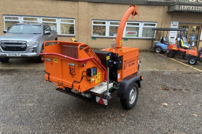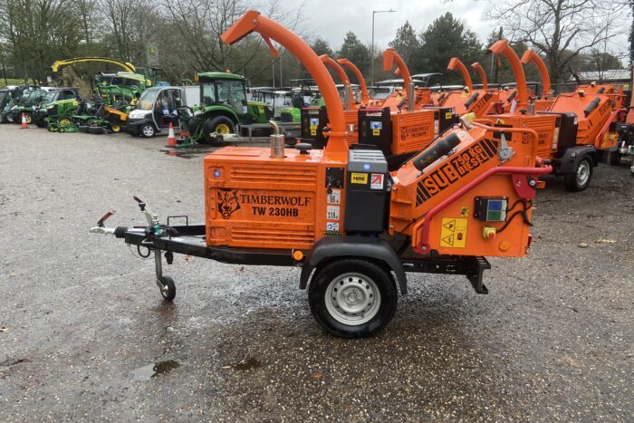 2025 EX-HIRE TIMBERWOLF TW 230HBD WOOD CHIPPER. 24HP DIESEL ENGINE, 6″ CAPACITY, TWIN FEED ROLLERS WITH AUTO-FEED CONTROL, ROAD TOWED, BRAKED AXLE, ROAD LIGHTS, 18L TANK CAPACITY, SUB 750KG TOWING WEIGHT, TWO QUICK ACCESS REVERSIBLE BLADES, 5T PER HOUR OUTPUT.