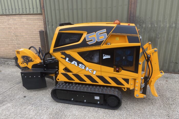 Self-propelled Stump cutter with Tracks and diesel engine, also available as a Remote Control Version with option for Dozer Blade on both models.