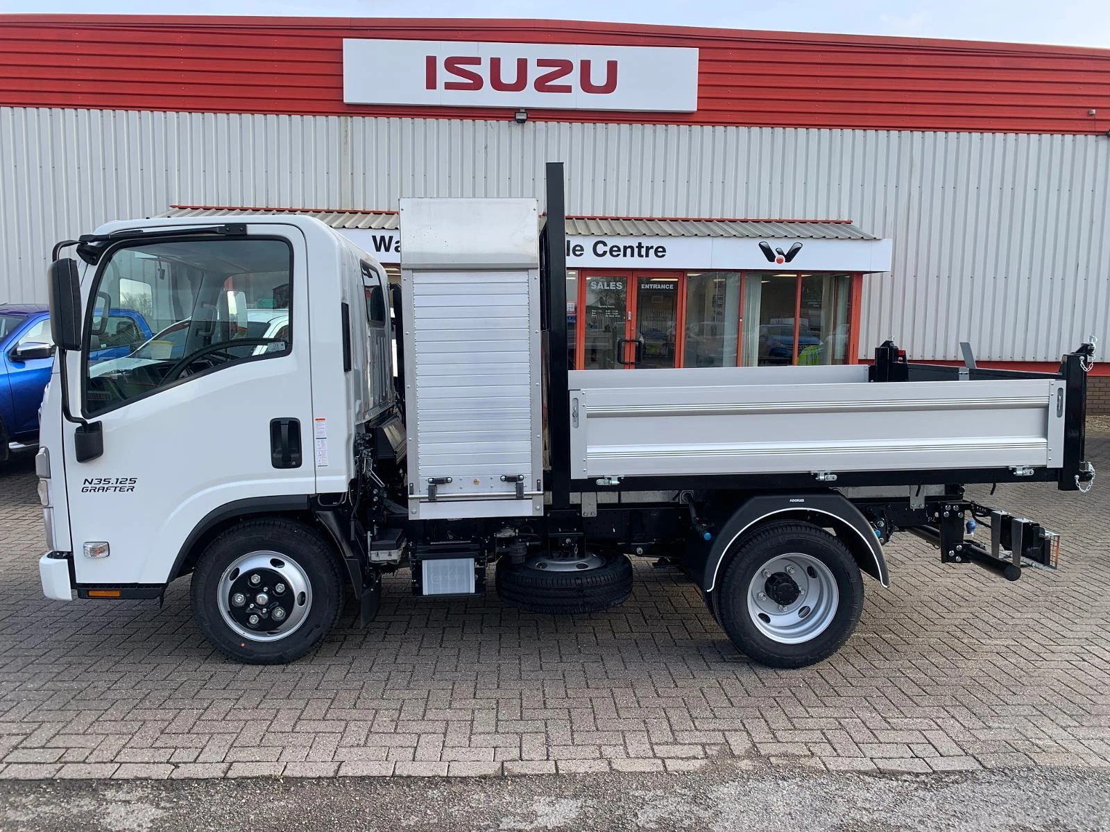 The Isuzu Grafter N35.125 Twin Wheel Tipper Commercial Vehicle offers the ideal balance between compact size and serious payload capacity. Thanks to its twin rear wheels, it provides exceptional grip, enhanced stability, and smoother tipping performance — especially under heavy loads or across challenging terrain.