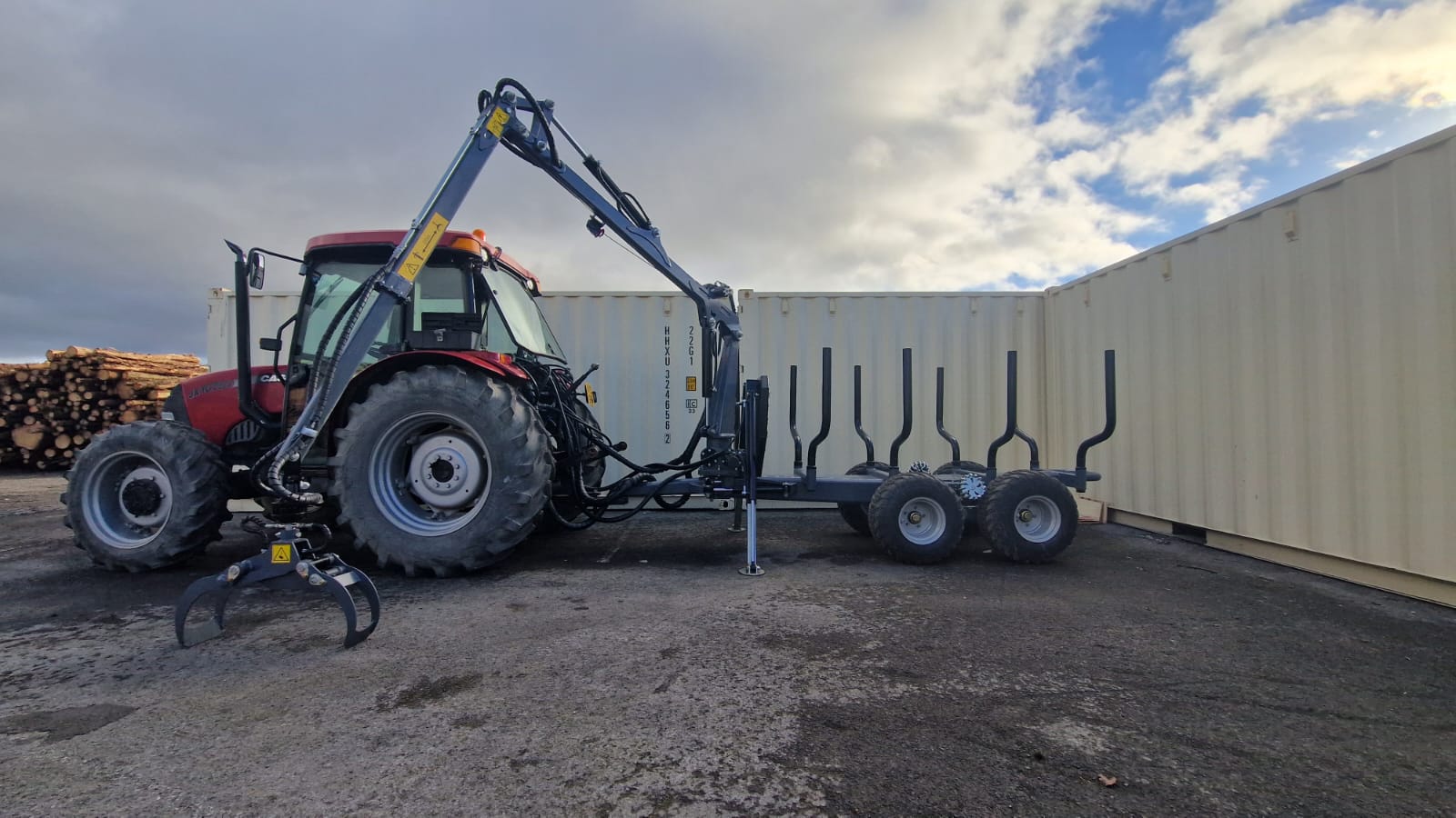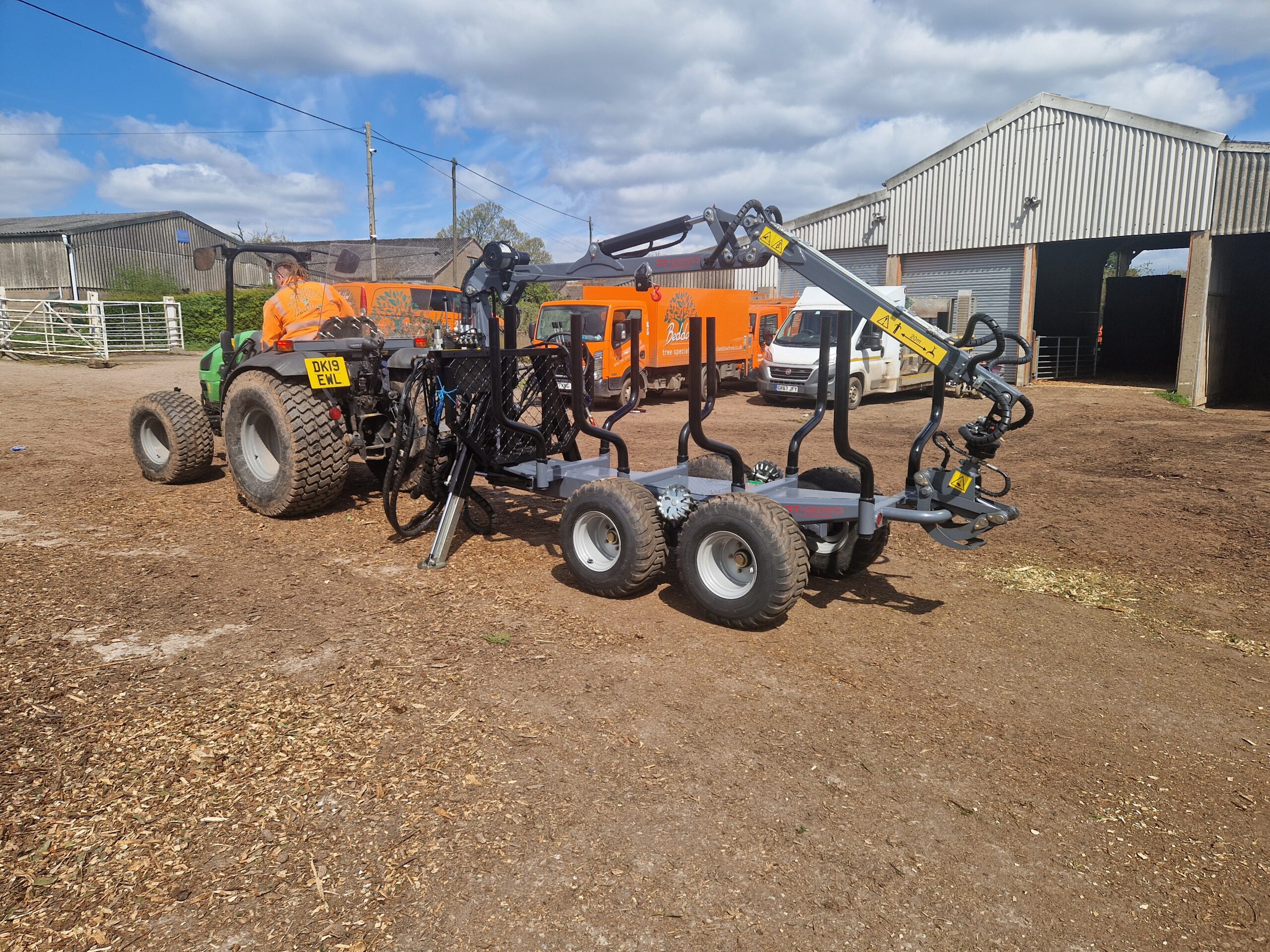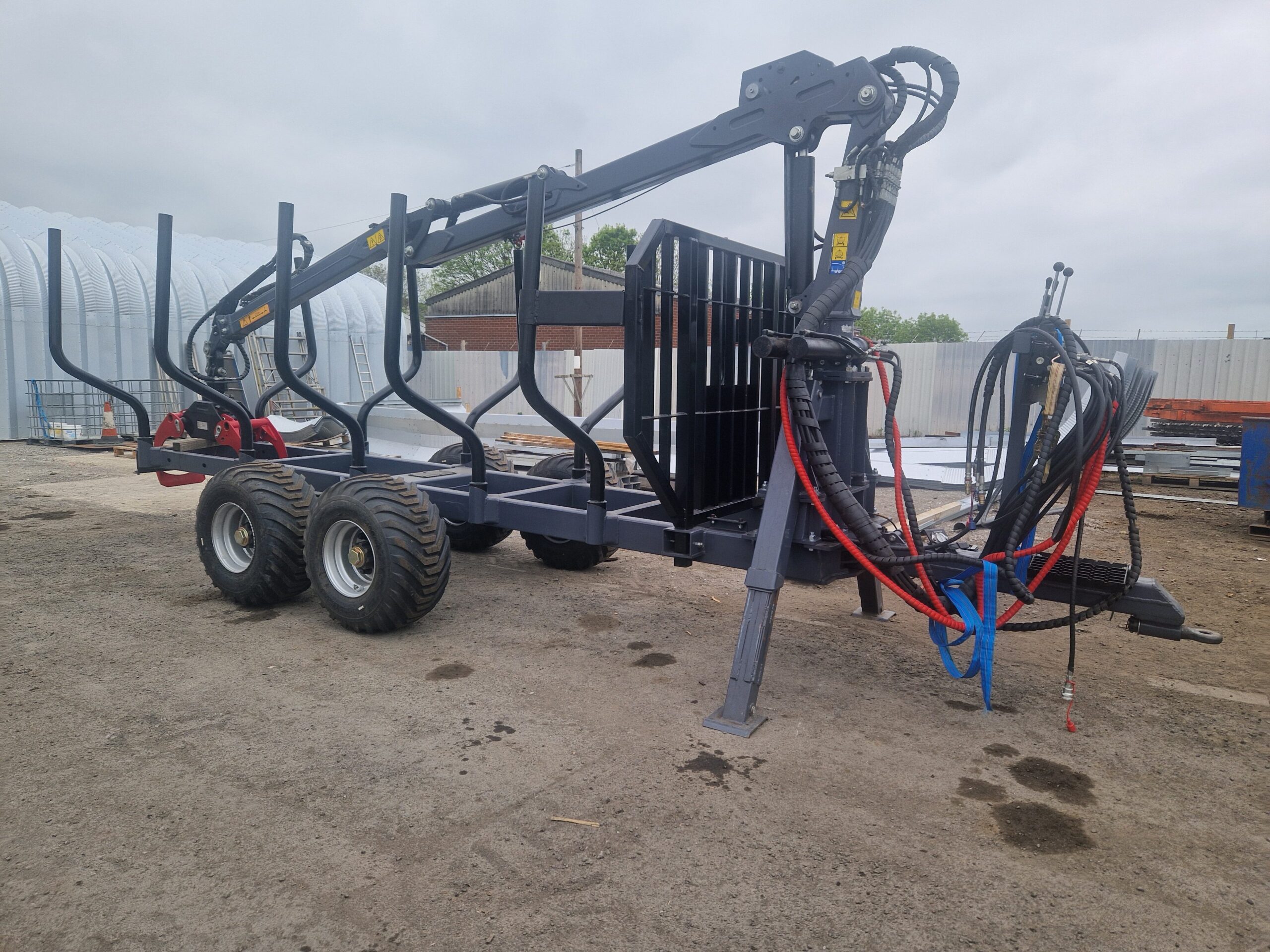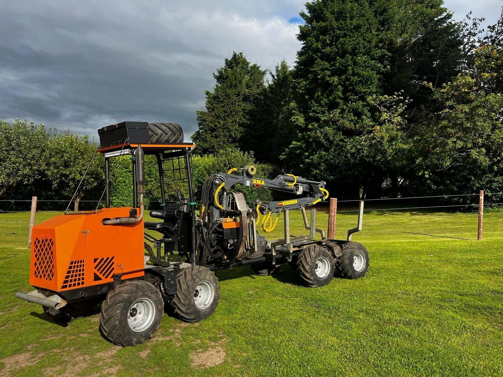 Kellfri-Durham DT420 Basic Forwarder, 3 ton capacity, 4.2 mtr crane with 4 way stick control, (400kg full extension) 08 Grab, 03 rotator, fixed drawbar, 11" tyres, 8 x Bolsters We are offering the basic model, bespoke builds to order (AWD) (Steering drawbar) (Radio remote winch) (Full walk & talk remote), please contact us for further information
