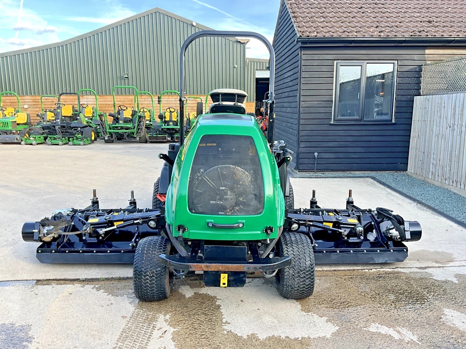 Manufactured in 2019 Only 1313 hours use  65HP 4 cylinder, diesel Kubota engine Huge 3.2 metre cutting width capable of mowing 8.5 acres per hour All 3 cutter units can be operated individually Hydrostatic transmission, 4 wheel drive Powered steering and deck lift Good tyres all round and tidy seat apart from a few small marks on the back rest Machines has had new flails fitted all round These machines are capable of tackling longer, rougher grass but also shorter more fine grass on sports pitches etc Fitted with full width rollers 2.1 metre transport width when units are folded in Very solid reliable machines
