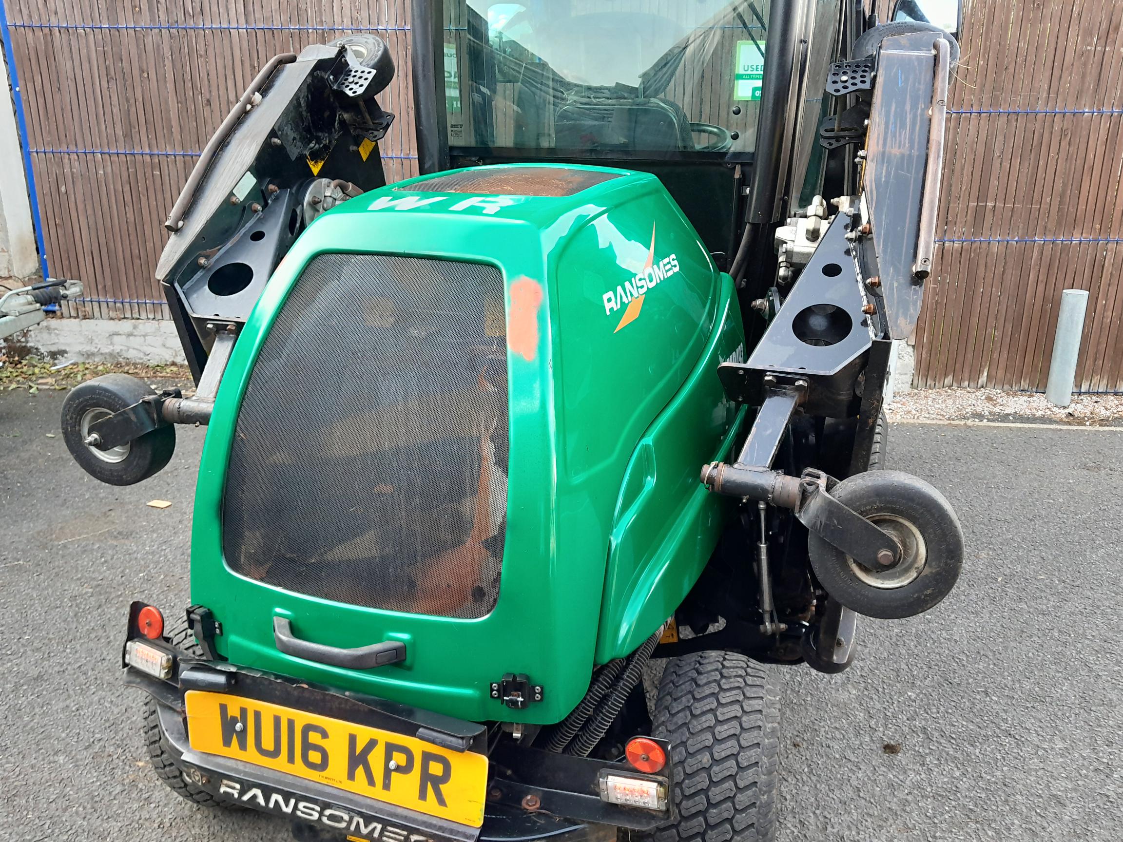 Used Ransomes MP493 Batwing Rotary mower fitted with the following: 4 cyliner Kubota diesel engine with 49HP Cabin fitted Hydrostatic drive transmission Electronic lift lower controls Suspension seat 3.3m working width Road lighting kit c/w mirrors Road registered 2016 Model 812 Hours