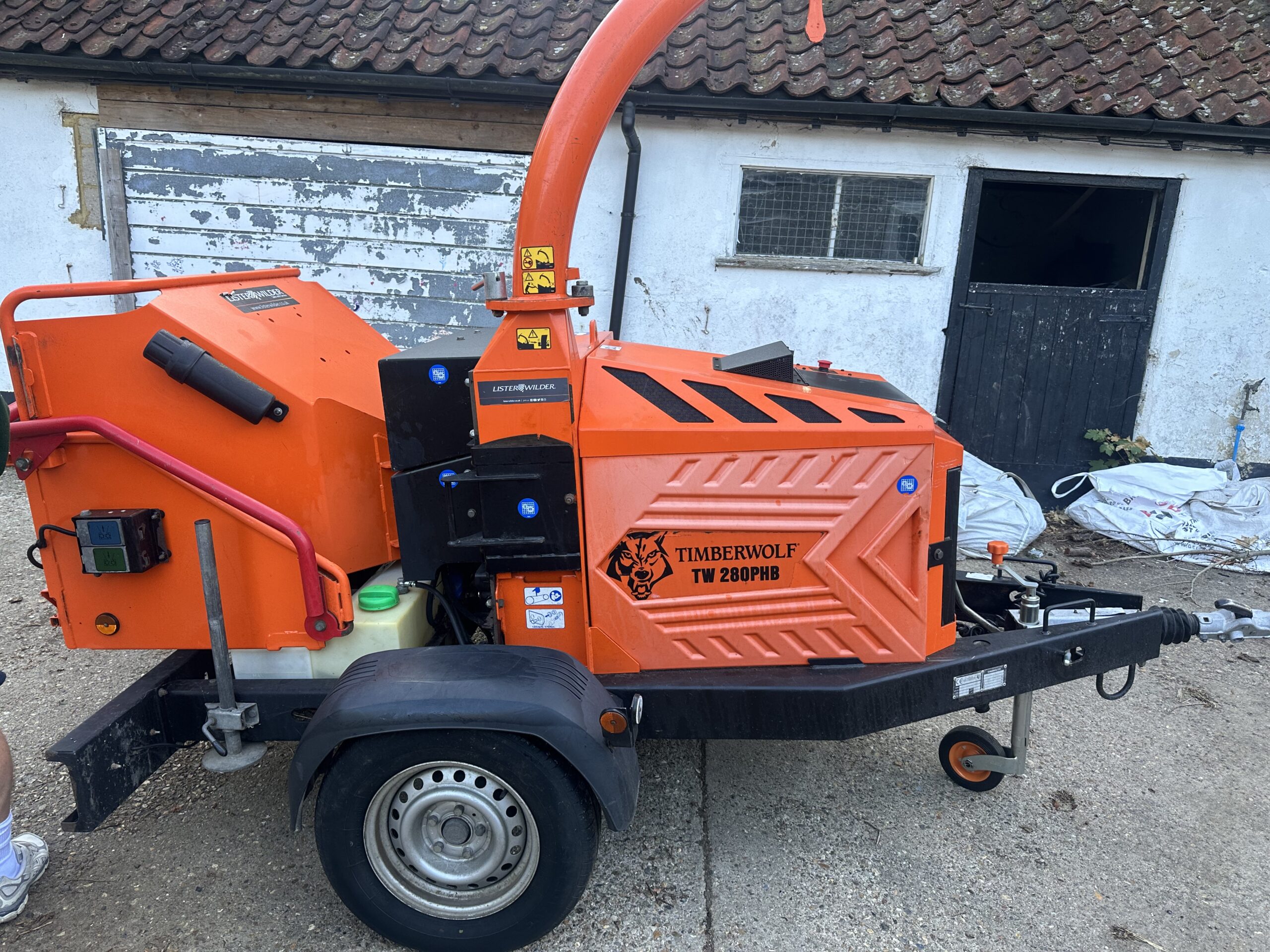 Used Timberwolf TW 280PHB Wood Chipper Timberwolf TW 280PHB Wood Chipper for sale. The Timberwolf TW 280PHB Wood Chipper road towable wood chipper is nothing short of outstanding. It is built to tackle the toughest of jobs with minimal maintenance. Bigger and stronger, yet it’s still easy to use. About this machine: ‘The TW280 is a faster stronger machine for the most demanding arborists’ Powered by a Kubota 57hp WG1605 four-cylinder petrol engine, the TW 280PHB offers 210mm (8″) cutting performance for serious arboriculture and forestry tasks. It is built to tackle the toughest of jobs with minimal maintenance Timberwolf’s 8″ road towable wood chipper,  the Timberwolf TW 280PHB Wood Chipper, is nothing short of outstanding. It is built to tackle the toughest of jobs with minimal maintenance. Bigger and stronger, yet it’s still easy to use. The Timberwolf TW 280PHB Wood Chipper has an extra-wide feed funnel and open top section to provide better visibility and ease of feeding. It has a wider in-feed aperture (280mm x 210mm) which is bigger in overall area than the nearest rival. Designed with the operator in mind, whether it’s the additional safety controls such as the reverse feed rollers overriding the stop bar or the carefully positioned air filter intakes to draw in cool, dust-free air. The devil really is in the detail! Key features of this Wood Chipper:  Kubota 57HP WG1605 4 Cyl. petrol engine  280mm x 210mm feed opening  2 x quick access double-sided reversible blades  210mm (8″) cutting performance  Quad force rollers for ultimate crushing power  280 (degrees) adjustable discharge  Average chip size 19.5mm Check out the full spec on the manufacturers website: https://timberwolf-uk.com/prod/tw-280phb-chipper/ I have three of these chippers and they are brilliant. The petrol version has just as much grunt as the old diesel version and is surprisingly good one fuel. It’s makes the Timberwolf 6inch version look very small and can handle some real big timber on piles of brash. The only reason for sale is to buy a brand new. The machine works well and has allways been well maintained. It will be sold with a new set of blades. Great machine really can’t fault it.