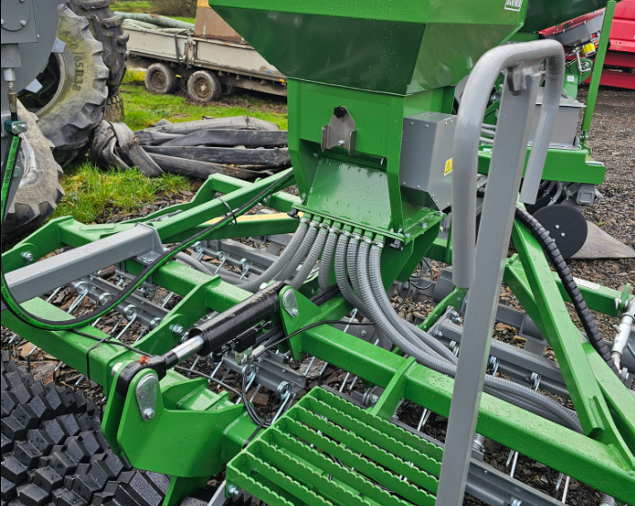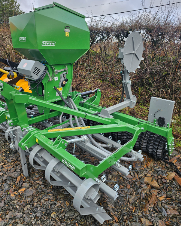 New Agriwir 3-metre Tines Seeder. Looking for a well-balanced, reliable seed drill ready for work this season? The 3-metre Agriwir Tines Seeder is in stock and ready for quick delivery. 460 mm rear roller – hydraulically adjustable. Front leveller plus 3 rows of 10 mm spring tines – perfect seedbed preparation. 270L seed hopper – simple, proven mechanical ground drive. Multiple sowing wheels – suitable for various seed types. Electric fan. Weight: 1550 kg. Delivery available.
