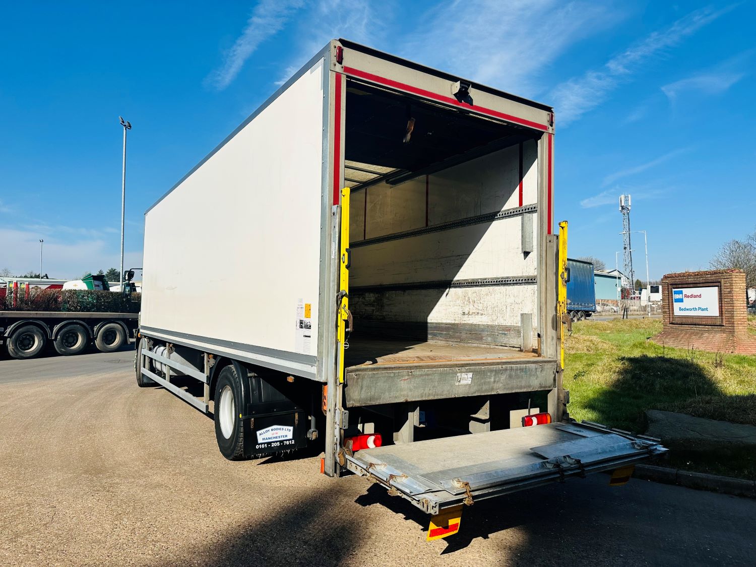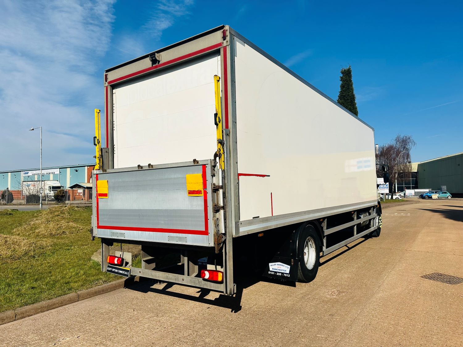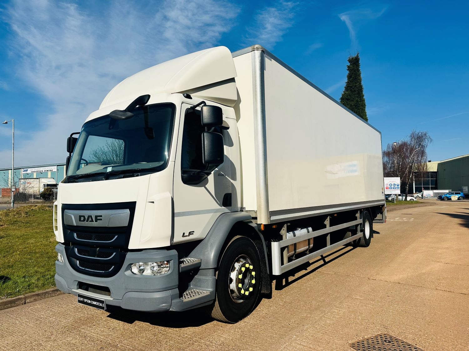 2019 DAF LF 260 BOX BODY LORRY. 99,000 MILES. EURO 6, DAY CAB, 18 TON, 28' BOX BODY, DHOLLANDIA 1500 KG COLUMN TAIL LIFT, ROLLER SHUTTER DOOR, REVERSING CAMERA, 6 SPEED MANUAL GEARBOX, CRUISE CONTROL, DEFLECTOR KIT, STEERING WHEEL CONTROLS, ELECTRIC WINDOWS / MIRRORS, CD, AIR SUSPENSION. BOX DIMENSIONS: INSIDE LENGTH 28' / WIDTH THROUGH BACK DOOR 7' 5" / HEIGHT THROUGH BACK DOOR 7' 4".