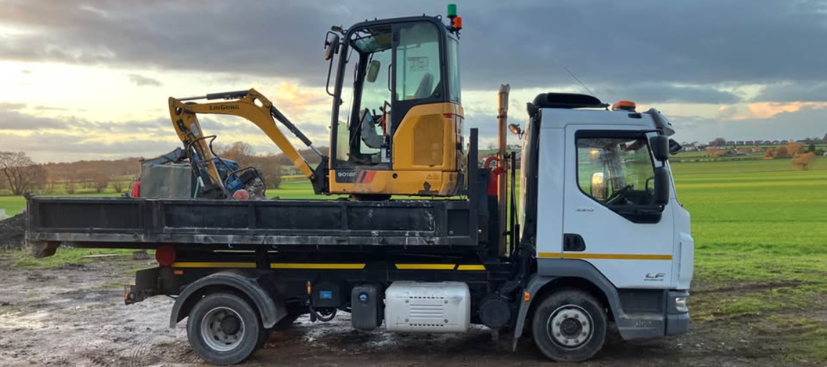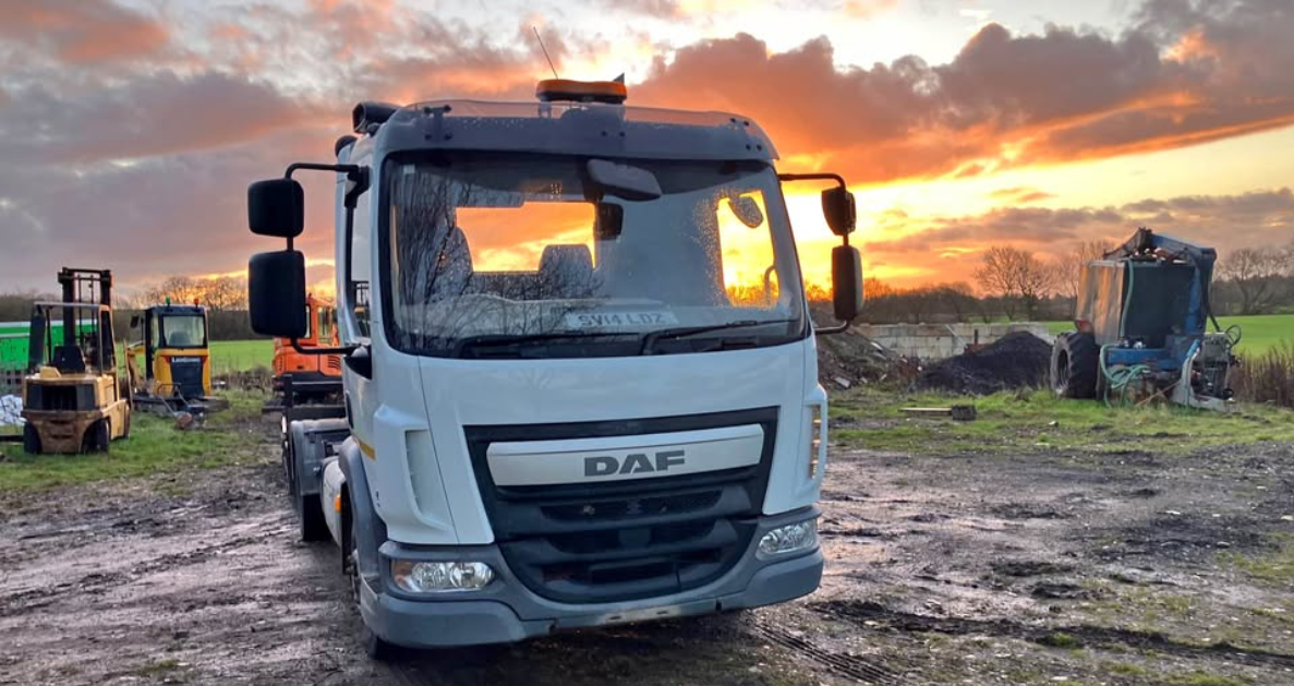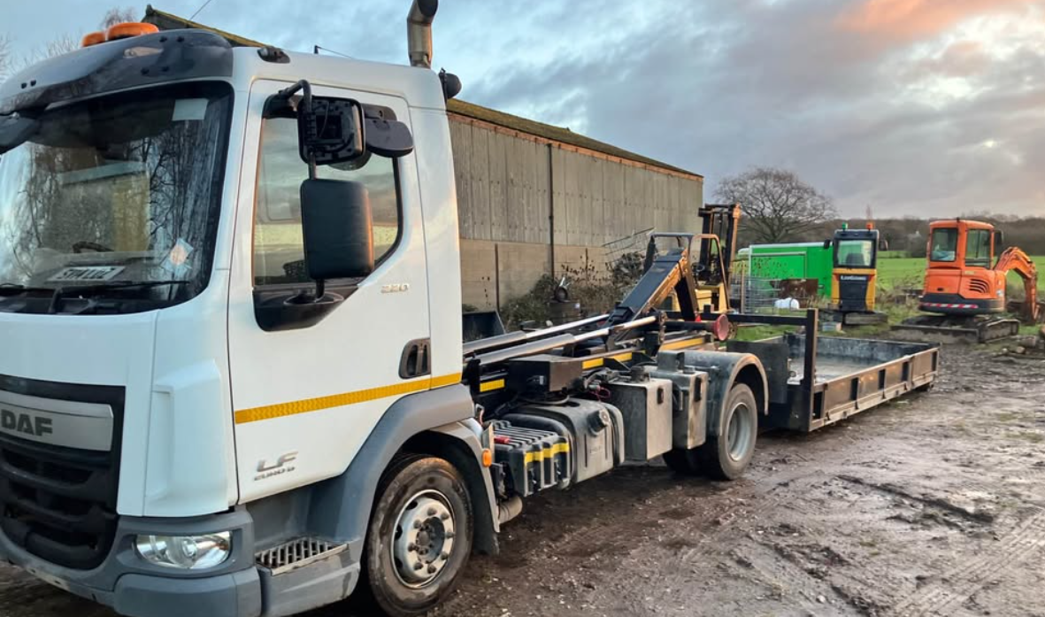 2014 DAF LF220 Hook Loader Lorry with Skip. 56,000 miles. 220 hp. Manual. 12 ton. Carries around 6 ton. Long MoT. Comes with Skip pictured. Nice straight truck.
