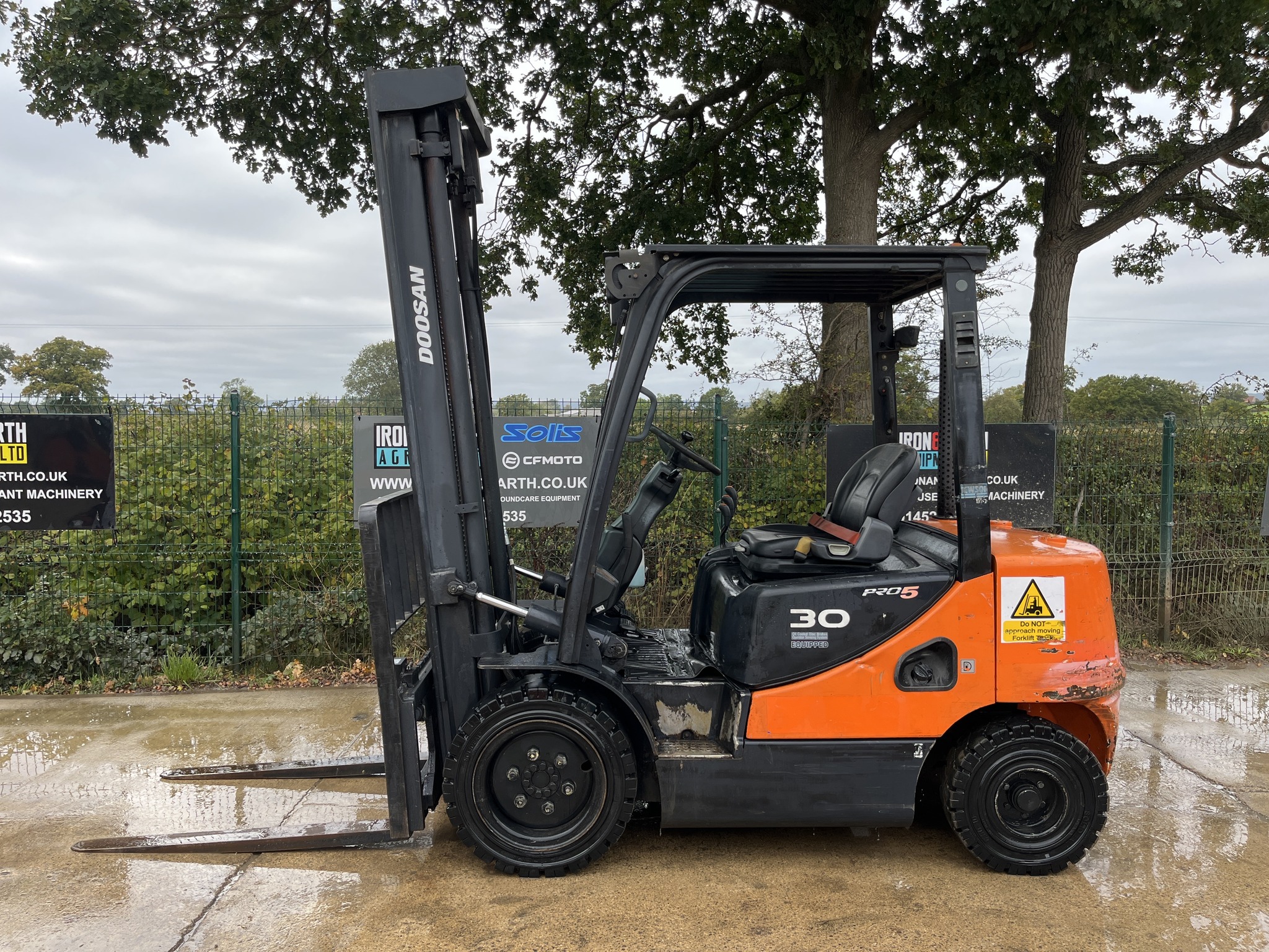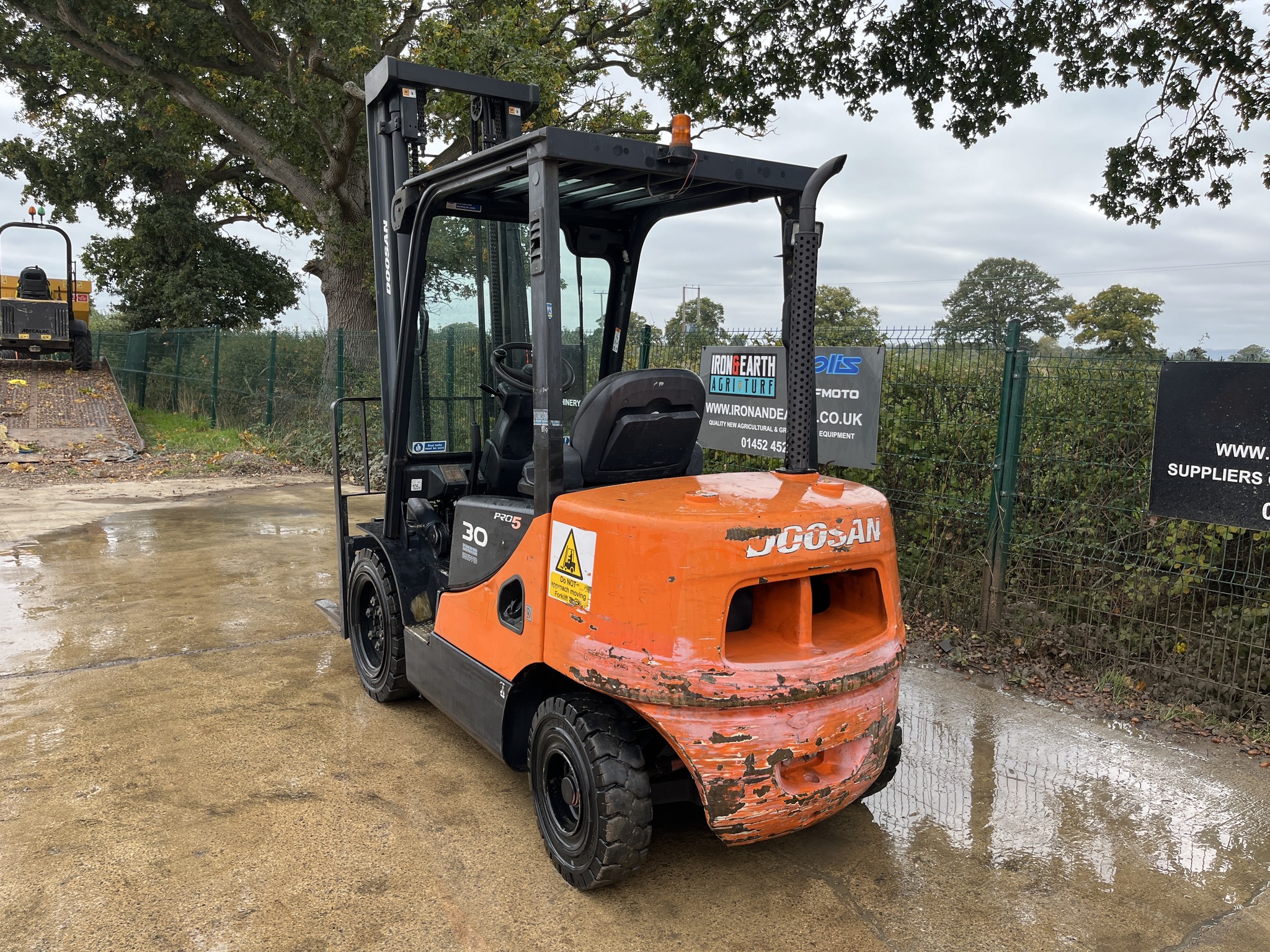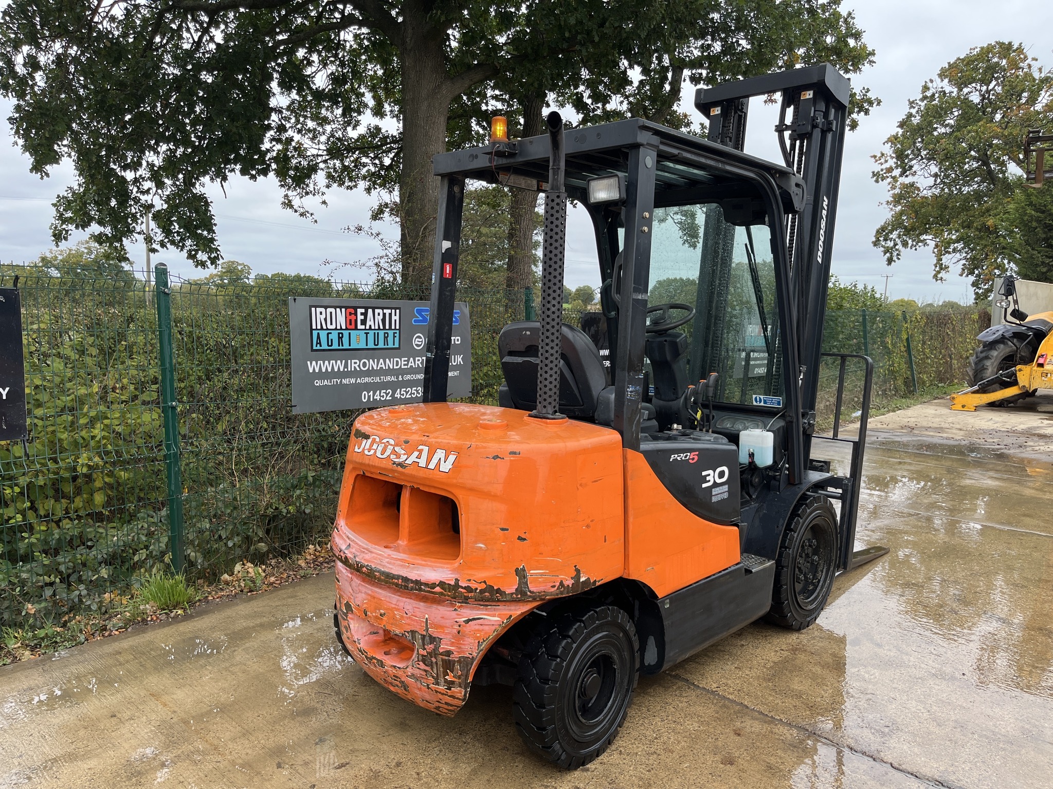 2013 Doosan D30S-5 3 Tonne Forklift Truck. With 8,493 Hours. Yanmar Engine, Lifts 3 Tonne, Max Height 4.35m, Turning Radius of 3.65m, Duplex Mast, Side Shift, Amber Site Beacon and Working Lights. Supplied With Pallet Forks. Delivery available.