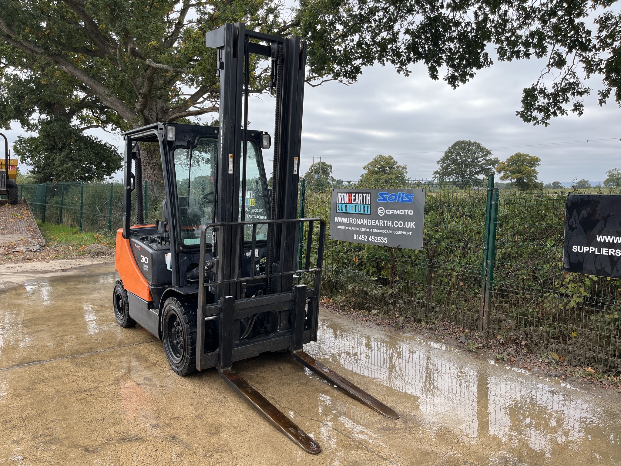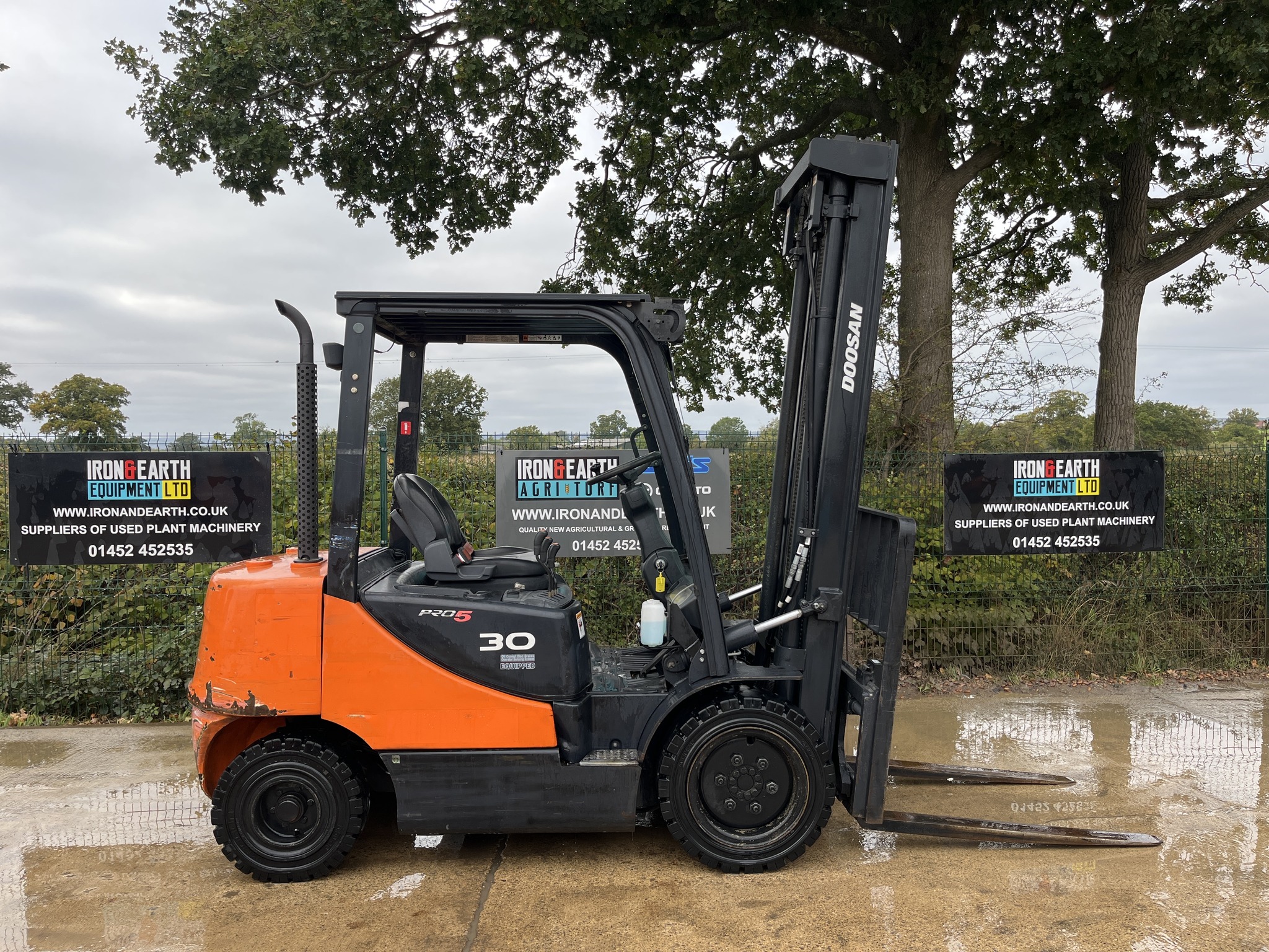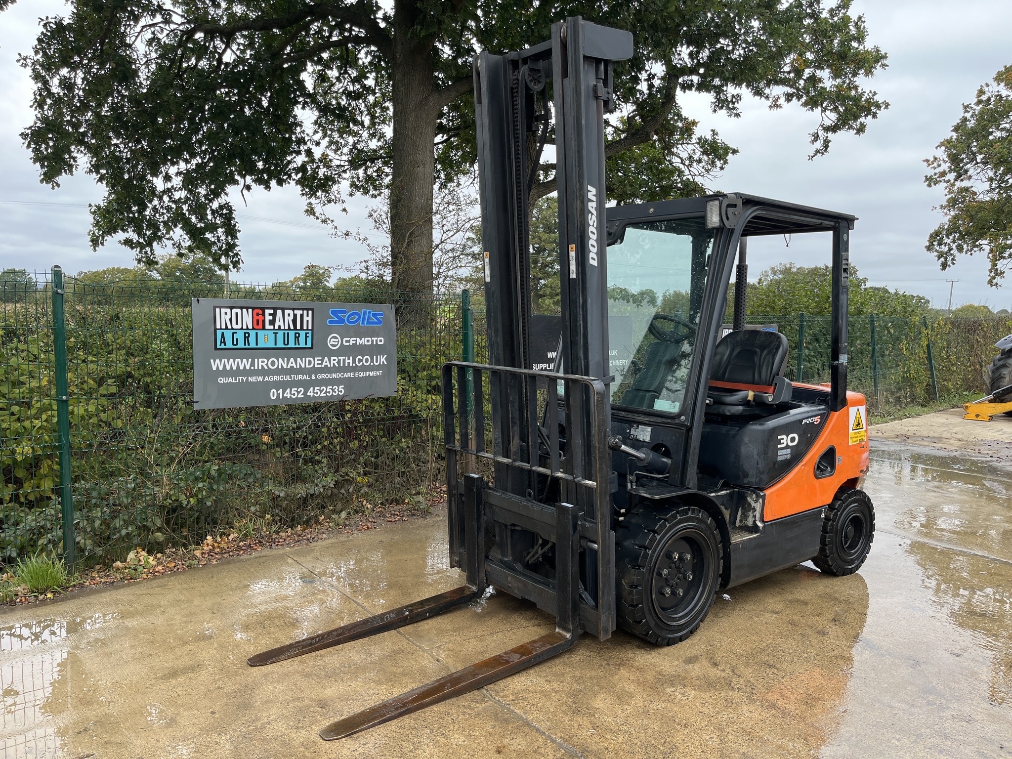 2013 Doosan D30S-5 3 Tonne Forklift Truck. With 8,493 Hours. Yanmar Engine, Lifts 3 Tonne, Max Height 4.35m, Turning Radius of 3.65m, Duplex Mast, Side Shift, Amber Site Beacon and Working Lights. Supplied With Pallet Forks. Delivery available.