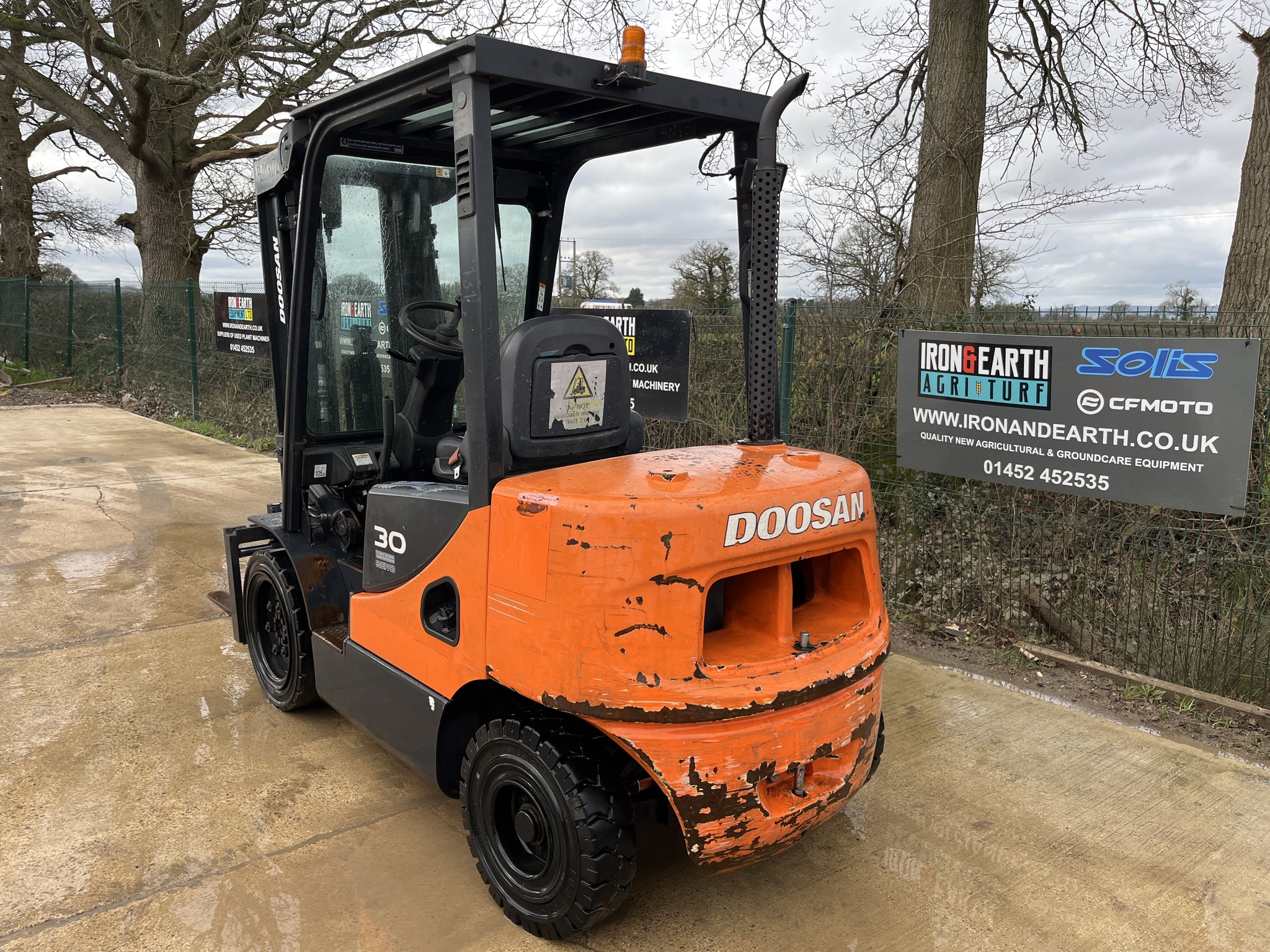 2013 Doosan D30S-5 Forklift Truck. With 8,333 Hours. Lift Capacity Of 3 Tonne, Max Height Of 4.73m, Turning Radius Of 2.36m, Triple Free Lift Mast, Container Spec. Supplied With Pallet Forks. Delivery available.