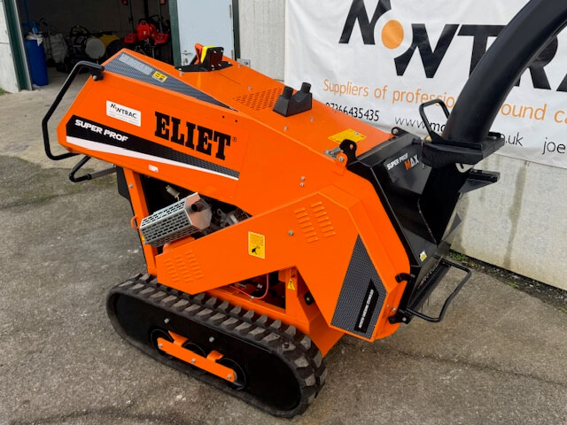 2022 Eliet Super Prof Max Cross Country Tracked Wood Chipper/Shredder. Only 79 Hours. 13cm Infeed Capacity. Powered by a twin cylinder Vanguard EFI engine producing 23hp, machine weight 602kg, HST twist grip forward / reverse, will shred timber or green waste material up to 13cm in diameter, perfect for all seasons. Otherwise hard-to-reach places such as railway banks, woods, plantations and vineyards now become accessible with the ELIET Super Prof MAX Cross Country. Despite the impressive set of tracks, the weight of the Cross Country is still quite limited. As a result the ground pressure is very low, which means that the caterpillar tracked shredder can also be used on a lawn without any risk of doing damage. Hydraulic feed roller, ABM system, ECOEYE system, 300° folding rotatable chute with adjustable valve, dimensions L2000 x W835 x H1450mm. Owned by us from new and in perfect condition.