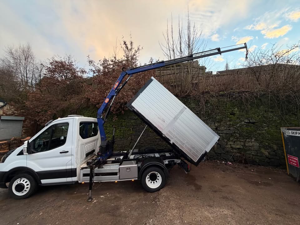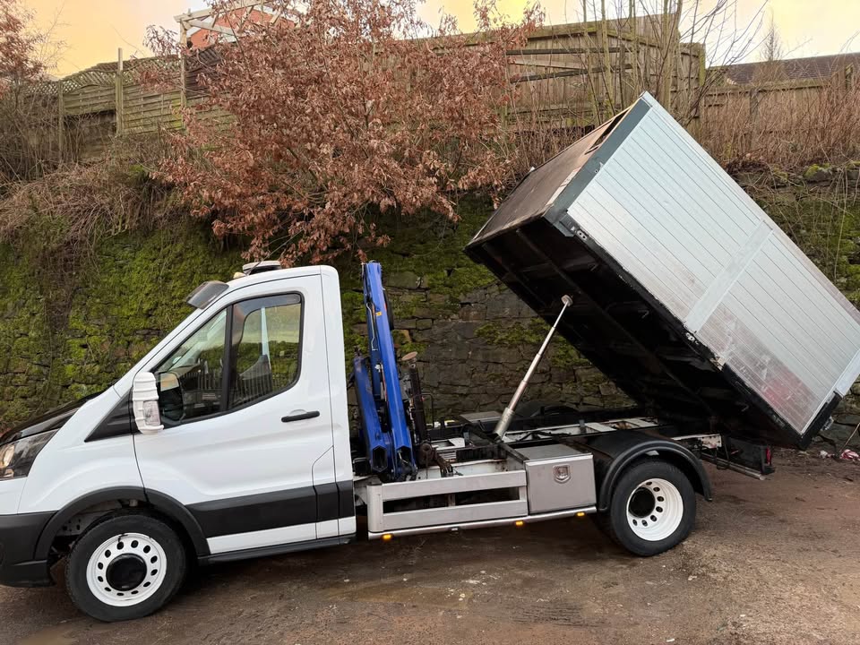 2022 Ford Transit Tipper Truck with Hiab Crane. 39,000 miles. Smurph-built Hiab truck. PM 2.8 triple extension crane. Crane fitted from brand new. 7.2 metre reach. Double controls with hydraulic legs. 2 owners. Air conditioning model. 170 BHP (standard). Side and rear LED light bars. Beacons all round. 9ft full aluminium high-sided tipping body. Very well looked after vehicle. Viewing welcome by appointment. Located Blackburn.