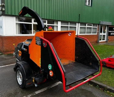 2020 Forst ST6P Petrol Wood Chipper. Only 518 hours. Specifications: Feed Roller Aperture: 6” x 8” / 150mm x 200mm. Feed Roller System: ForstGrip Feed Roller System. Flywheel System: Open Top Flywheel (640 x 25mm) Twin 8” Blades. Engine: Briggs and Stratton Vanguard – 40hp V Twin Petrol. No Stress System: AutoIntelligence No Stress Device. Feed System: AutoIntelligence Fully Water and Vibration Proof Touch Pads. Fuel Capacity: 30 Litres. Noise Level: Lwa 122dB. Weight: 745kg. Width: 1320mm. Length (hopper up): 3350mm. Height (with chute): 2285mm. The Först ST6P is the fastest, most aggressive and most robust machine in its class making it the best-selling 6” capacity petrol wheeled wood chipper in the UK and Europe.