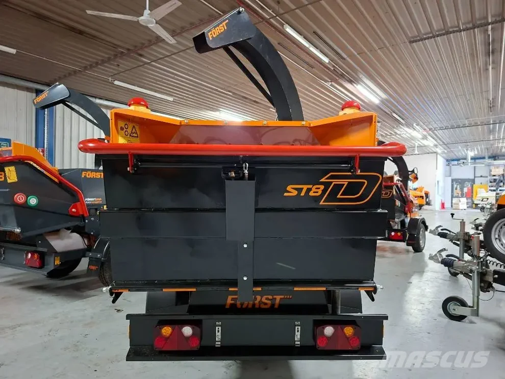 2021 Först ST8D55 Wheeled Wood Chipper. Only 477 hours. 8" Infeed. 55hp Doosan DPF Diesel Engine. FörstGrip feed roller system. AutoIntelligence no stress device. Open Top Flywheel (728 x 30mm). Twin 10” Blades. Excellent condition, Fully Serviced, New Blades, and Anvil fitted. All work carried out by approved Forst engineers. Manufacturer approved. Supplied with Warranty. Machine is ready to go.