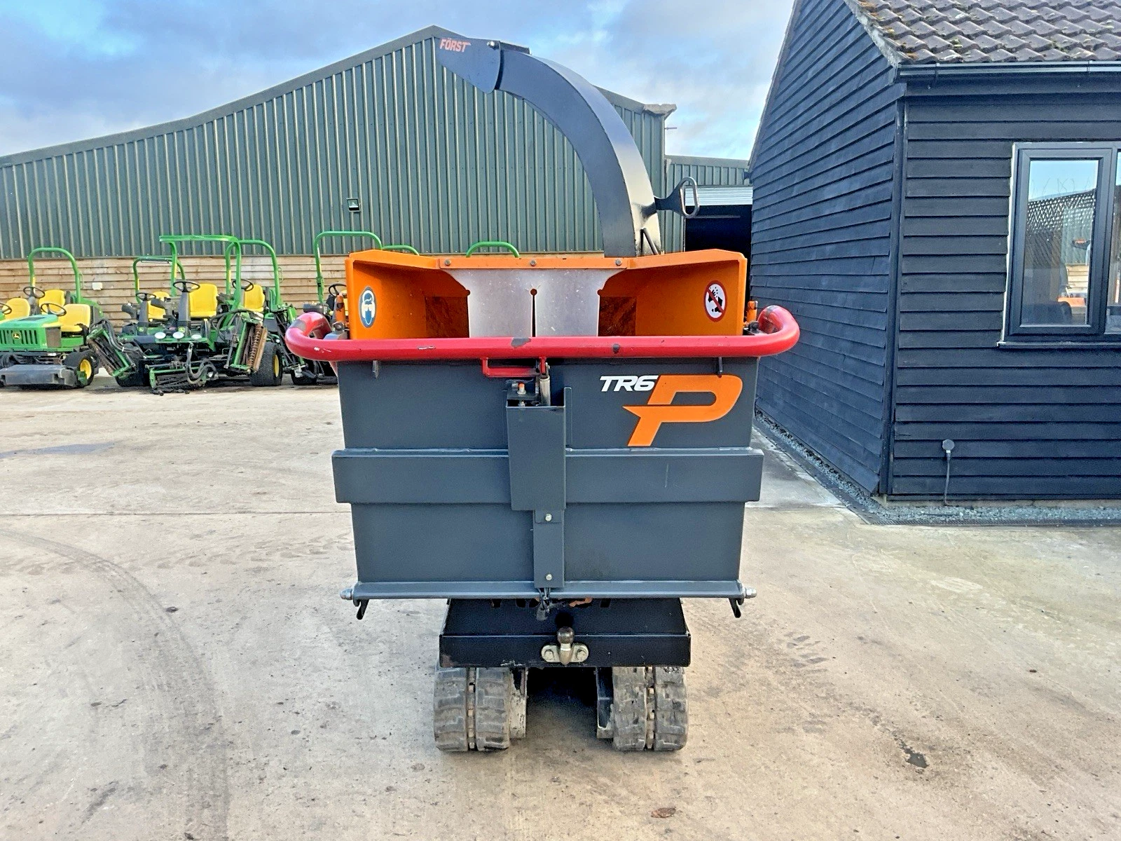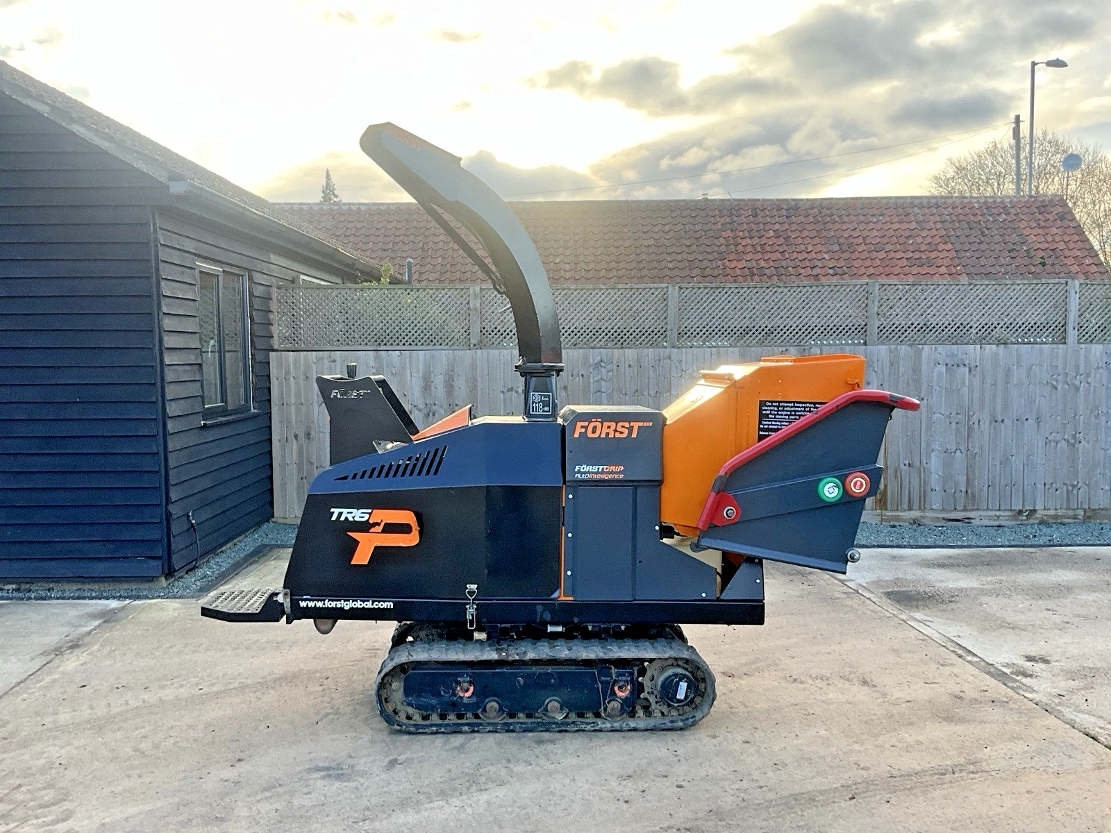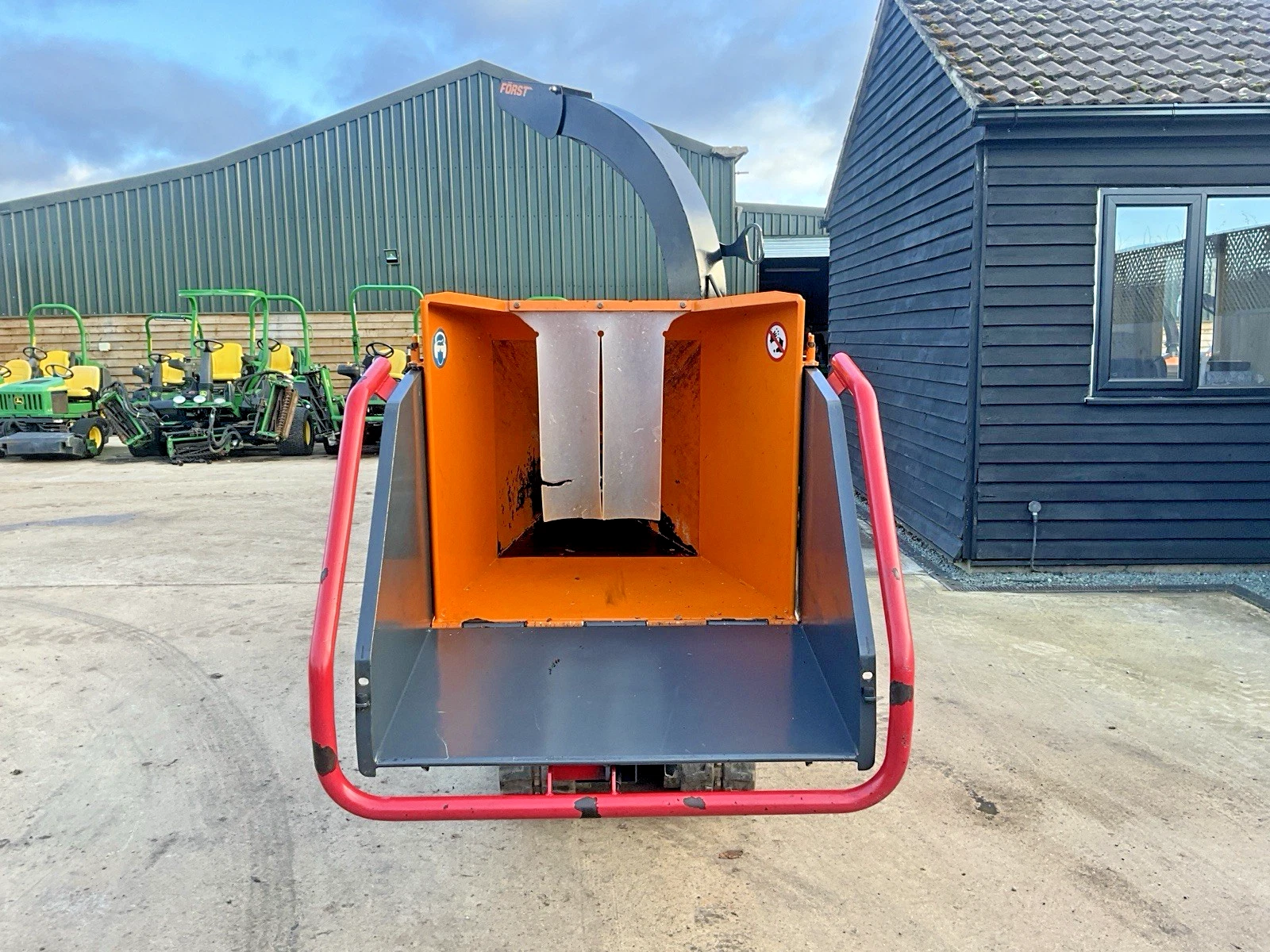 2018 Forst TR6P37 Tracked Wood Chipper. ONLY 1160 HOURS USE FROM NEW. 6 Inch chipping capacity. Powered by a Twin cylinder 37HP Briggs and Stratton petrol engine. Hydraulic feed rollers. Stress control. Starts, runs and chips faultlessly. Mounted on variable width track base. Tracks are in excellent condition. Very genuine, completely original - paintwork is in good order. Usual age related marks and scuffs around the hopper etc. Nice straight machine with plenty of power.