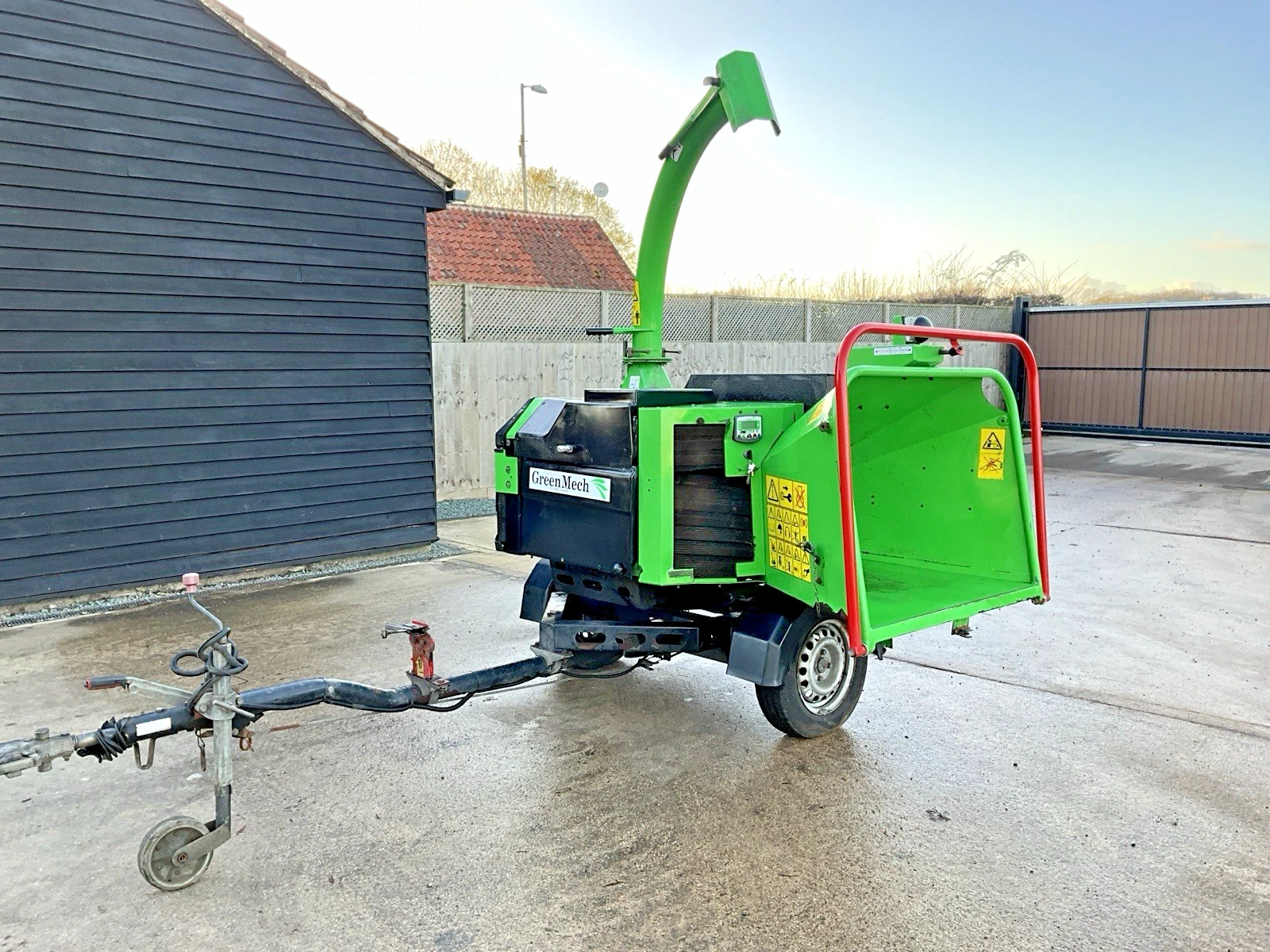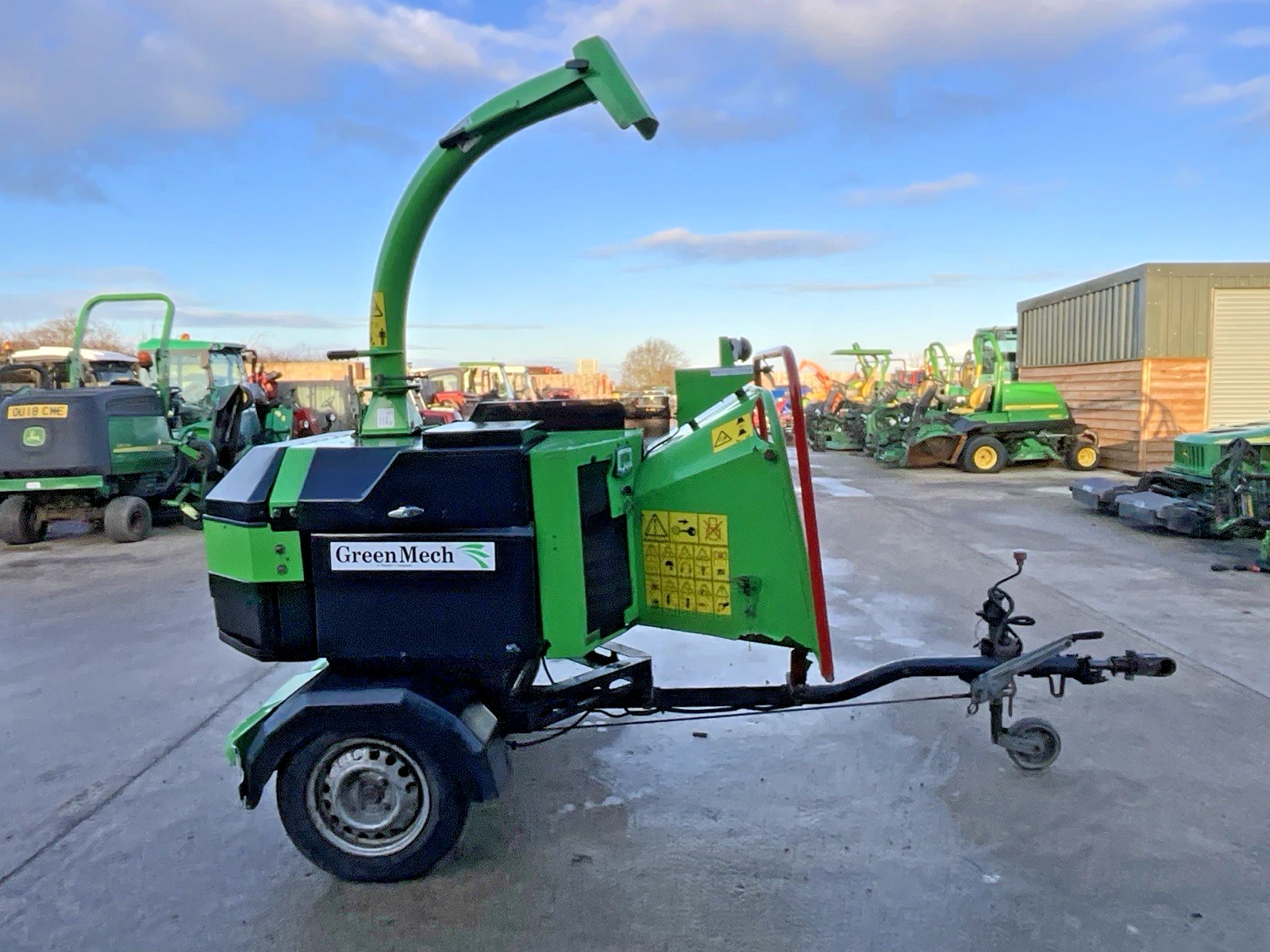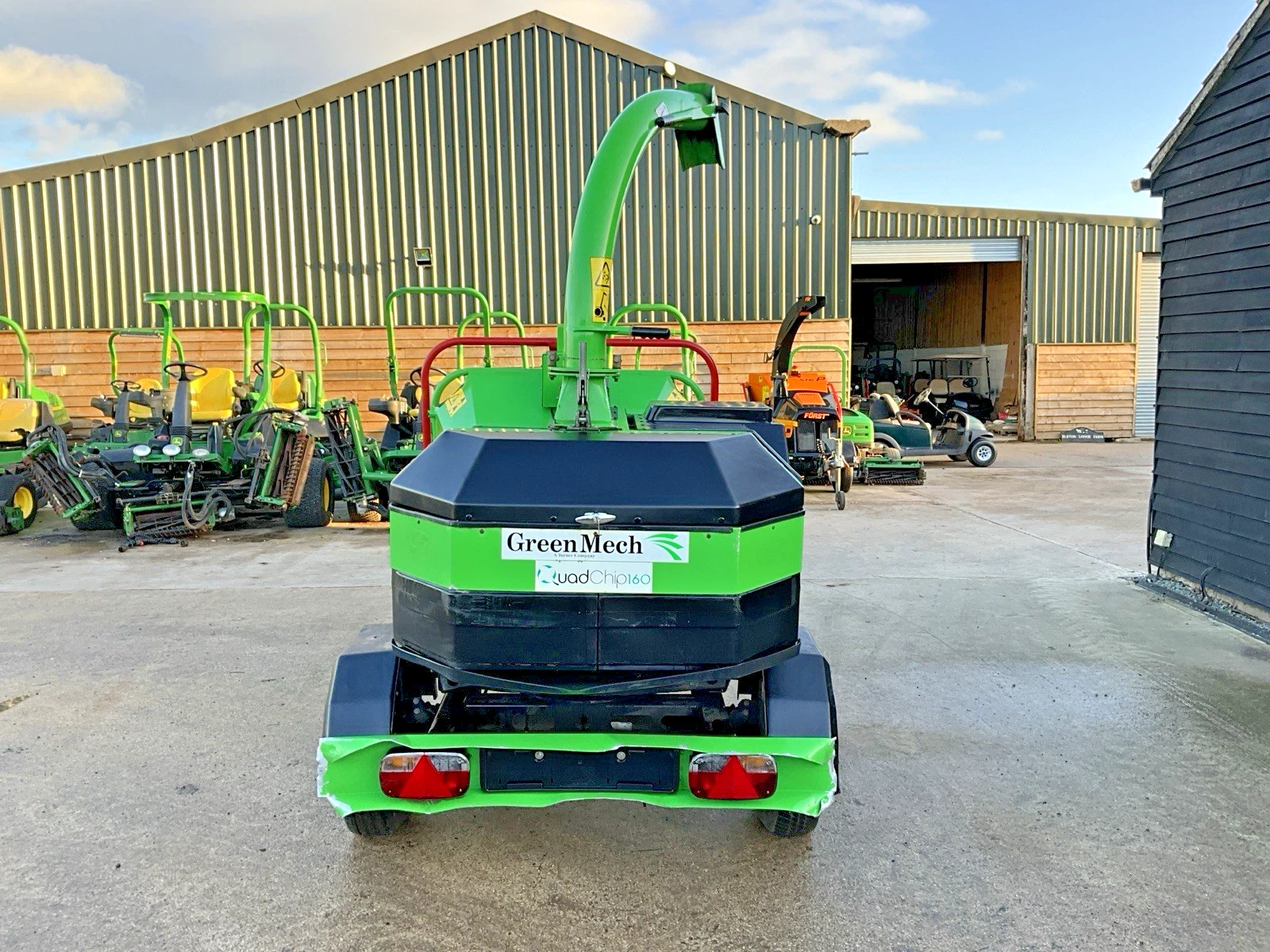 2012 Greenmech Quadchip 160 Wheeled Wood Chipper. ONLY 933 HOURS USE FROM NEW. 160mm chipping capacity. Powered by a 3 cylinder diesel engine. Hydraulic feed rollers. Stress control. Starts, runs and chips faultlessly. Mounted on braked fast tow chassis. Chipper can be turned on the chassis to better suit working position. Couple of small knocks around the back bumper but otherwise a very clean chipper for the money. Mechanically sound, would go straight to work.