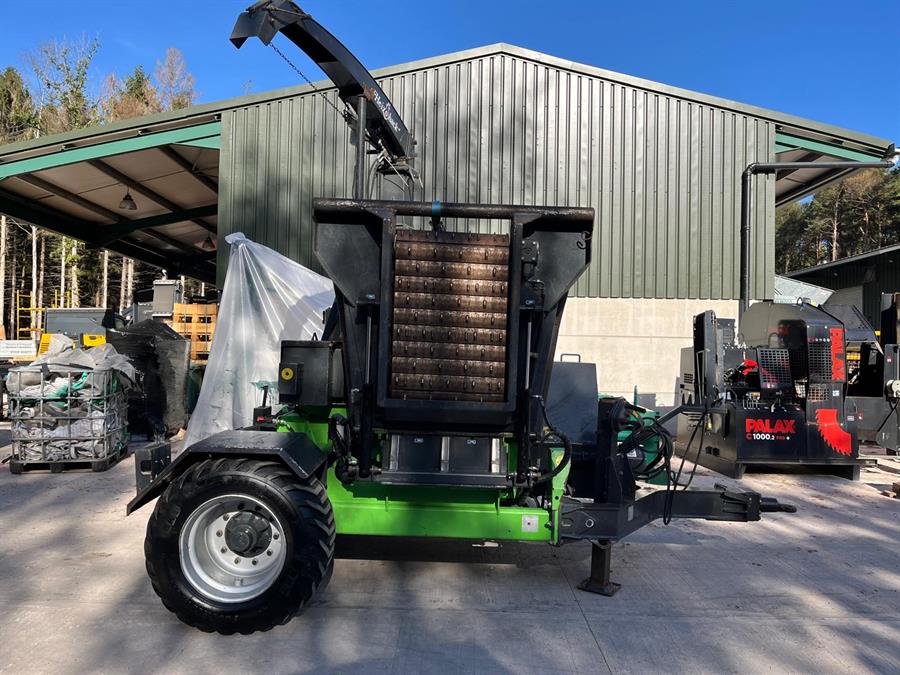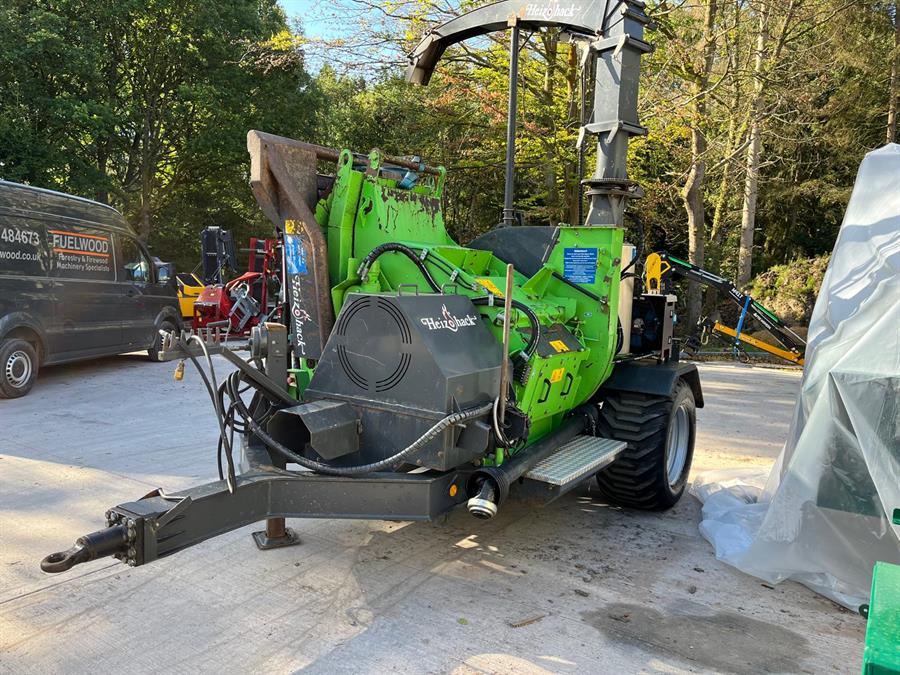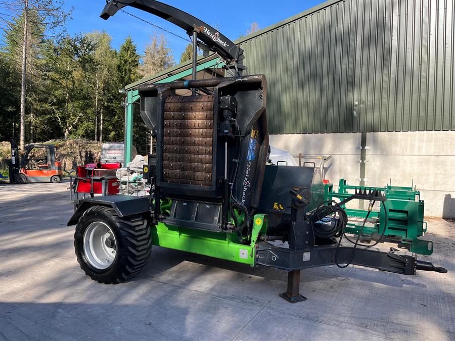 2021 Heizohack HM8-400K Crane-fed Biomass Wood Chipper. 16" Capacity. 400 x 706mm Infeed. Hydraulic Infeed Table with Infeed Conveyor. Radio Chipper Controls. Chute Extension. Excellent condition.