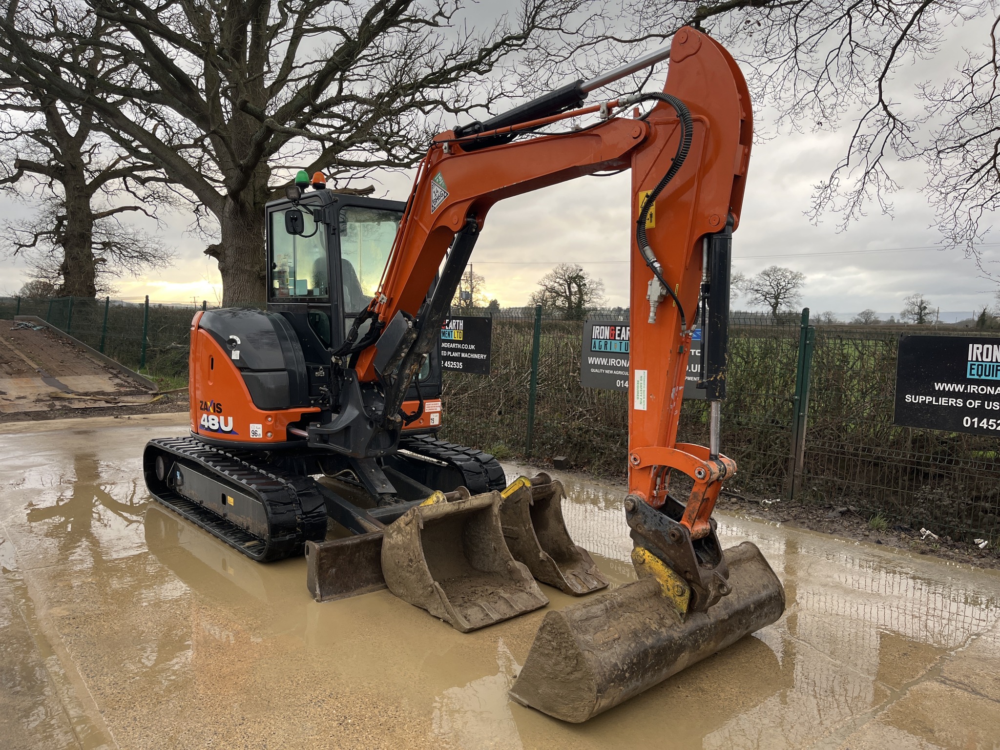 2023 Hitachi ZX48U-6 CLR 4.8 tonne Excavator. With 2,081 Hours. Two Speed Tracking, Hammer Piped, Heated Cab With A/C, Radio, Amber and Green Site Beacons. Supplied With Hydraulic Q-Hitch and 3 Buckets. Delivery available.