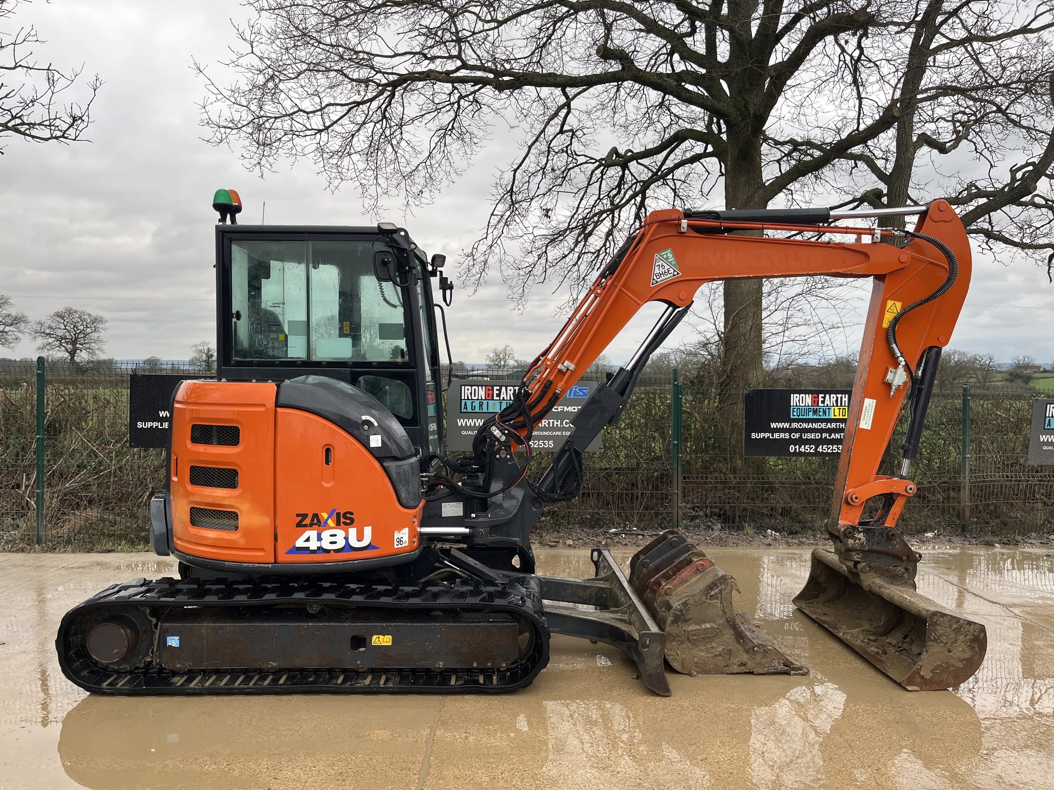 2023 Hitachi ZX48U-6 CLR 4.8 tonne Excavator. With 2,525 Hours. Two Speed Tracking, Hammer Piped, Heated Cab With A/C, Radio, Amber and Green Site Beacons. Supplied With Hydraulic Q-Hitch and 3 Buckets. Delivery available.