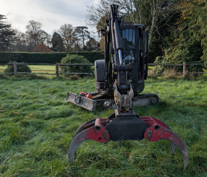 2015 Hyundai R25Z Arb / Forestry Digger. 5,071 hours. 2.6 ton. Zero tail swing. Guarded front window. LED spot light and roof light bar. 13,500lb blade mounted winch with wireless remotes. Comes with open tine brash grab, 2 digging buckets and grading bucket. Tow ball mounted on blade for timber trailer which will also be available by negotiation. Only selling due to end of contract. Good solid digger, viewing welcome. Can deliver nationwide at cost. NO VAT.