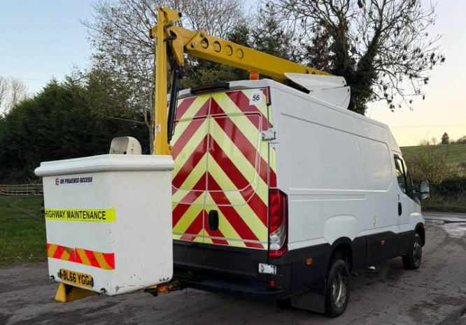 2017 Iveco Daily 50-150 – 5 Ton Truck with Access Platform. 86,000 miles. 66 Reg. MOT March 2026. LOLER Tested – Direct from Company. With Aldercote VZ140P Cherry Picker.