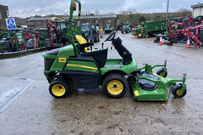 2023 JOHN DEERE 1570 TERRAINCUT COMMERCIAL FRONT MOWER. 554 HOURS, HYDROSTATIC TRANSMISSION, 4WD, TURF TYRES, FOLDING ROPS, 62 INCH COMMERCIAL REAR DISCHARGE MOWER DECK FACTORY INSTALLED, ROAD REGISTERED, 37.4HP DIESEL, VERY GOOD CONDITION.