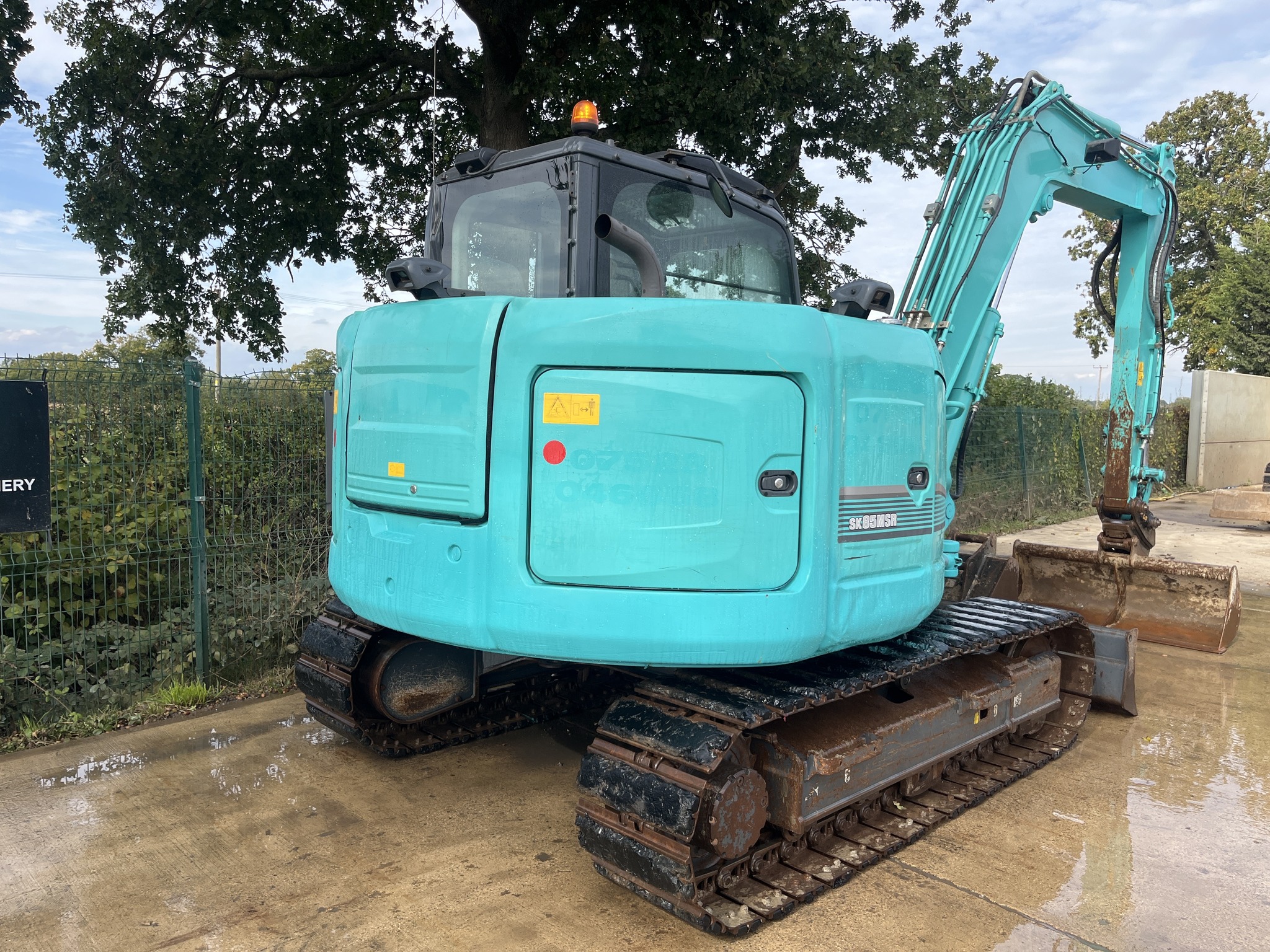 2018 Kobelco SK85MSR-3E 9 Tonne Excavator. With 4,482 Hours. Isuzu Engine, Hammer Piped, Steel Tracks With Pads, Rear View Camera, Heated Cab With A/C, Radio, Amber Site Beacon. Supplied With Hydraulic Q-Hitch and 2 Buckets. Delivery available.