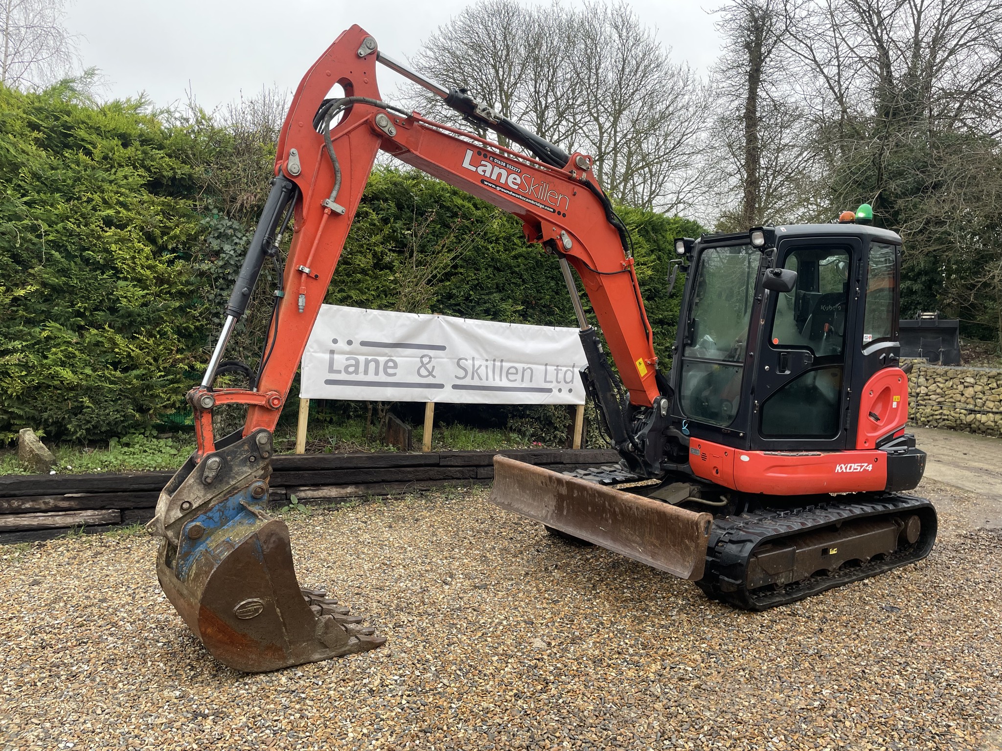 2018 Kubota KX057-4 5.5 tonne Excavator. 2,681 Hours. Powerful and reliable Kubota diesel engine: 33.8kw. Max digging depth: 3.89m. Operating weight: 5,545kg. Set of buckets. Isolator fitted. Comfortable cab with good visibility. Machine is in good condition throughout, has been well maintained and is ready to go straight to work. The KX057-4 is one of the most popular machines in its class, known for its strong digging performance, excellent stability and legendary Kubota reliability. Trade-ins welcome.