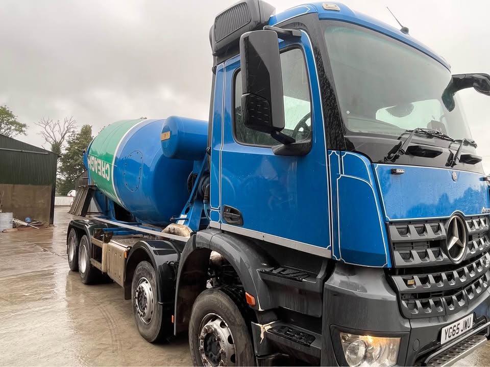 2015 Mercedes-Benz Arocs 3248 Concrete Mixer Lorry. 228,000 km. Euro 6. 8×4 Hymix P8000 8m3 Concrete Mixer, Washdown, Beacons, Auto, Cruise, Hill Assist, Phone, Air Seat, Aircon, Electric Windows / Mirrors, Sunroof, 1 Owner.
