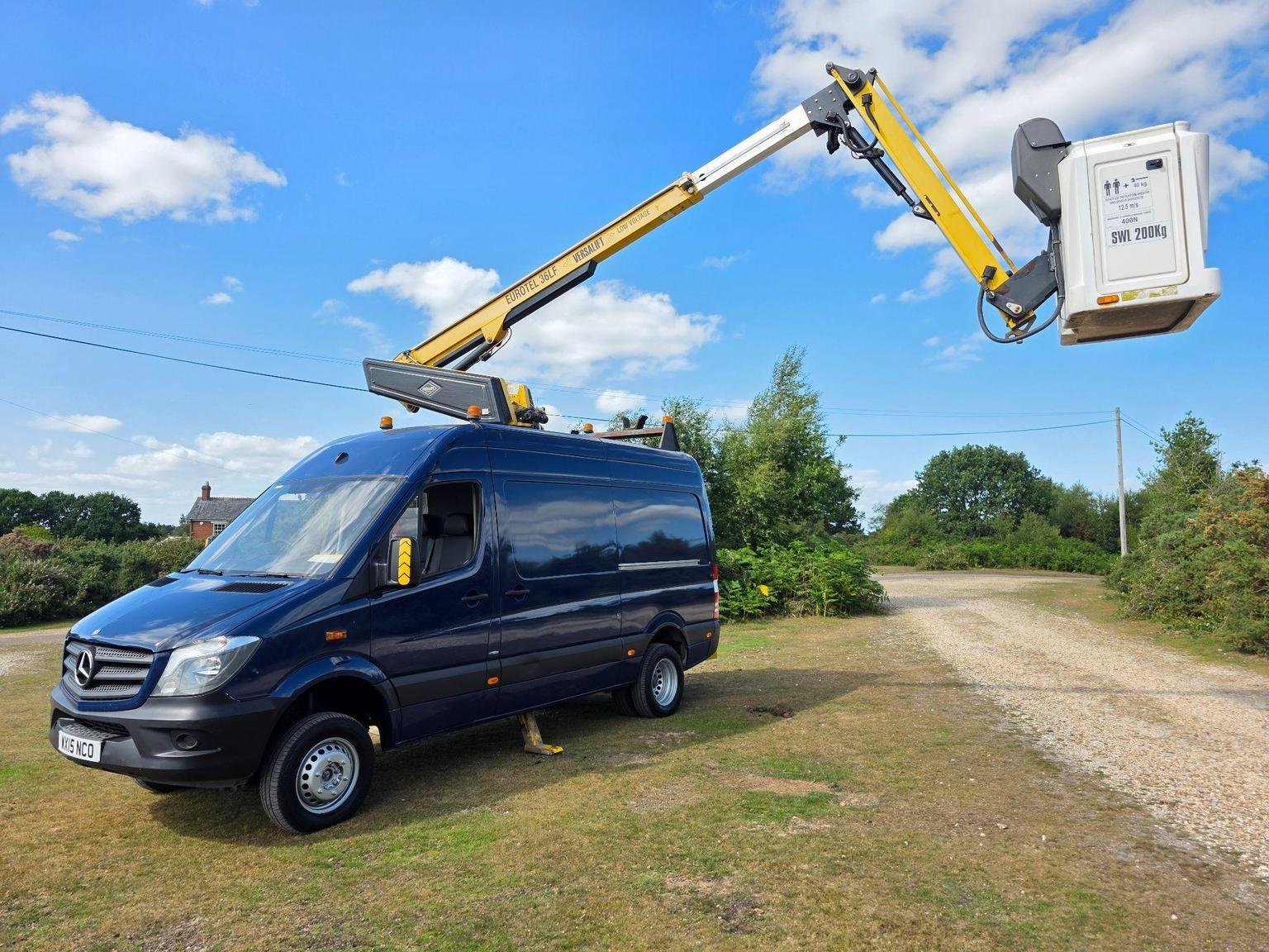 2015 Mercedes-Benz Sprinter with Access Platform. 114,298 Miles. 2.1 litre Diesel. Manual. 513 CDi BlueTec model. 4x4. 4WD. L3. H3. With Versalift Eurotel 36LF Access Platform. Working Height 13.8m. Horizontal Reach 7.3m. Net Load 2 persons / 200kg. 3 months Warranty. Part exchange welcome.