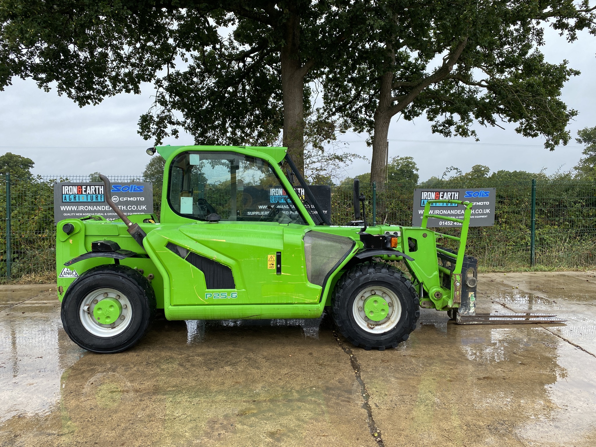 2016 Merlo P25.6 6m Telehandler. With 1,942 Hours. Lifts 2500KG to 6m, Hydrostatic, Kubota Engine, Amber and Green Site Beacons, Heated Cab. Supplied With Pallet Forks. Delivery available.
