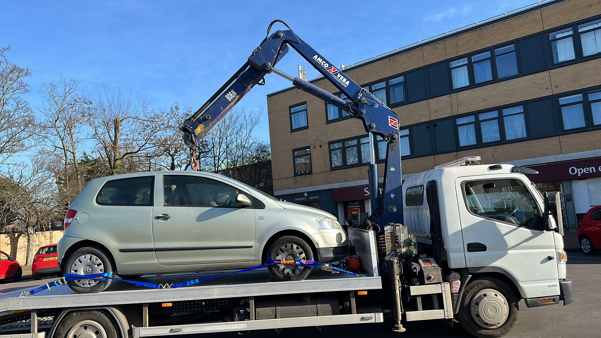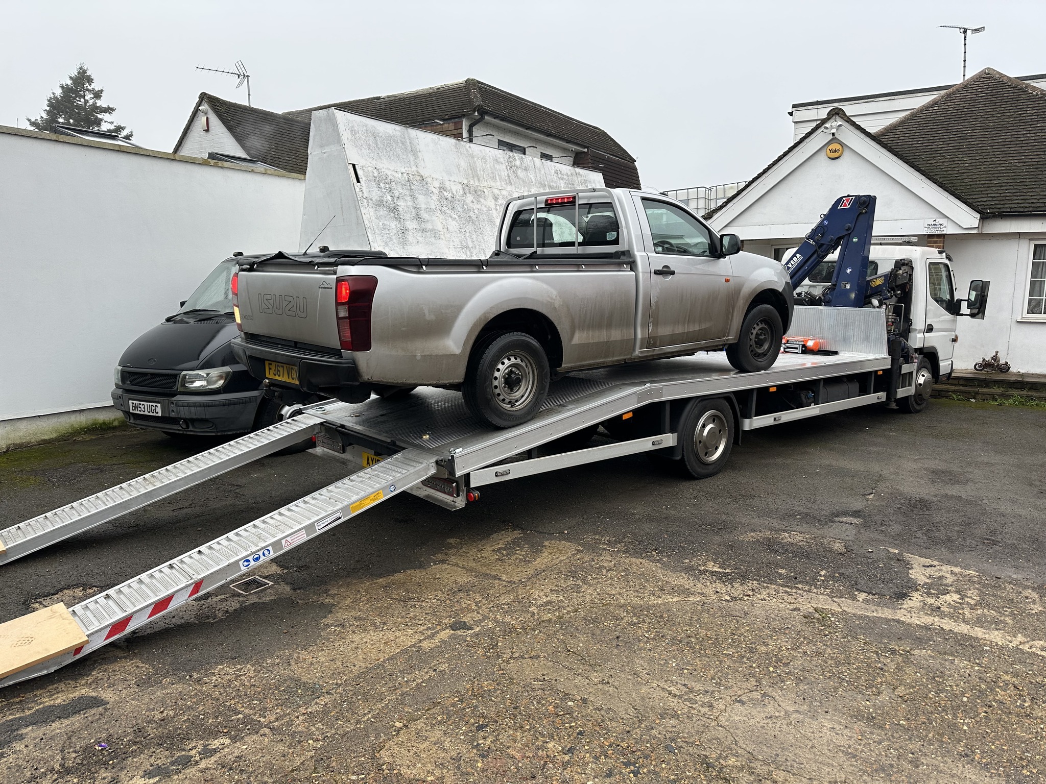2016 Mitsubishi-Fuso Canter 7.5 Recovery Truck with Crane. 3 litre Diesel. Euro 6 ULEZ compliant. With Hiab Crane - lifts 2,630kg. With new Test. Ready for work. Alloy Ramps will take 3,500kg. Also ideal for Tracked Cherry Pickers (saves towing a trailer). May part exchange car / van / gold / silver / cash my way.