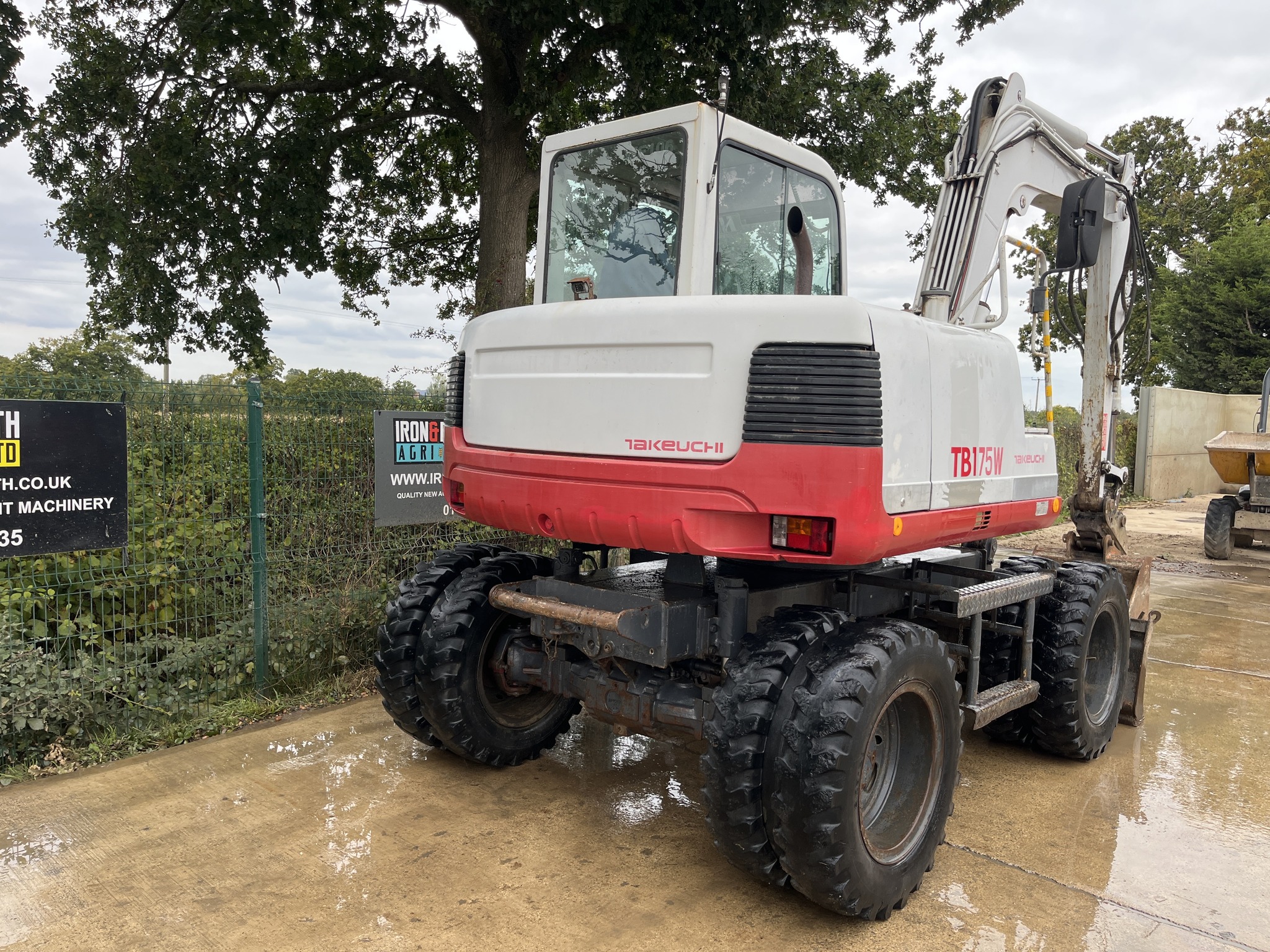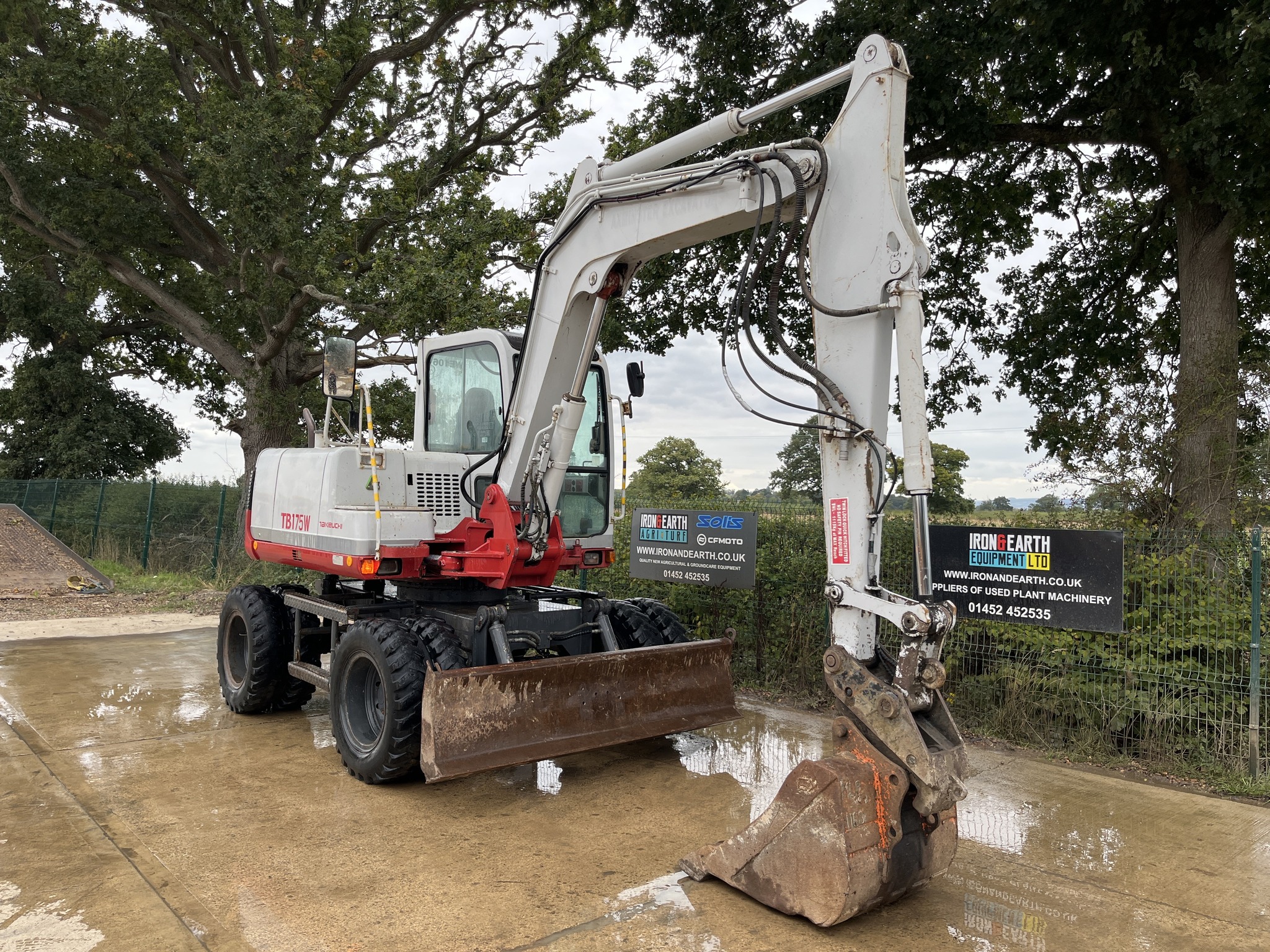 2003 Takeuchi TB175W 8.6 Tonne Wheeled Excavator. With 14,655 Hours. Yanmar Engine, Two Speed Tracking, Radio, Hammer and Rotate Piped, Road Registered, Proportional Controlled, Heated Cab. Supplied With Hydraulic Q-Hitch and 1 Bucket. Delivery available.