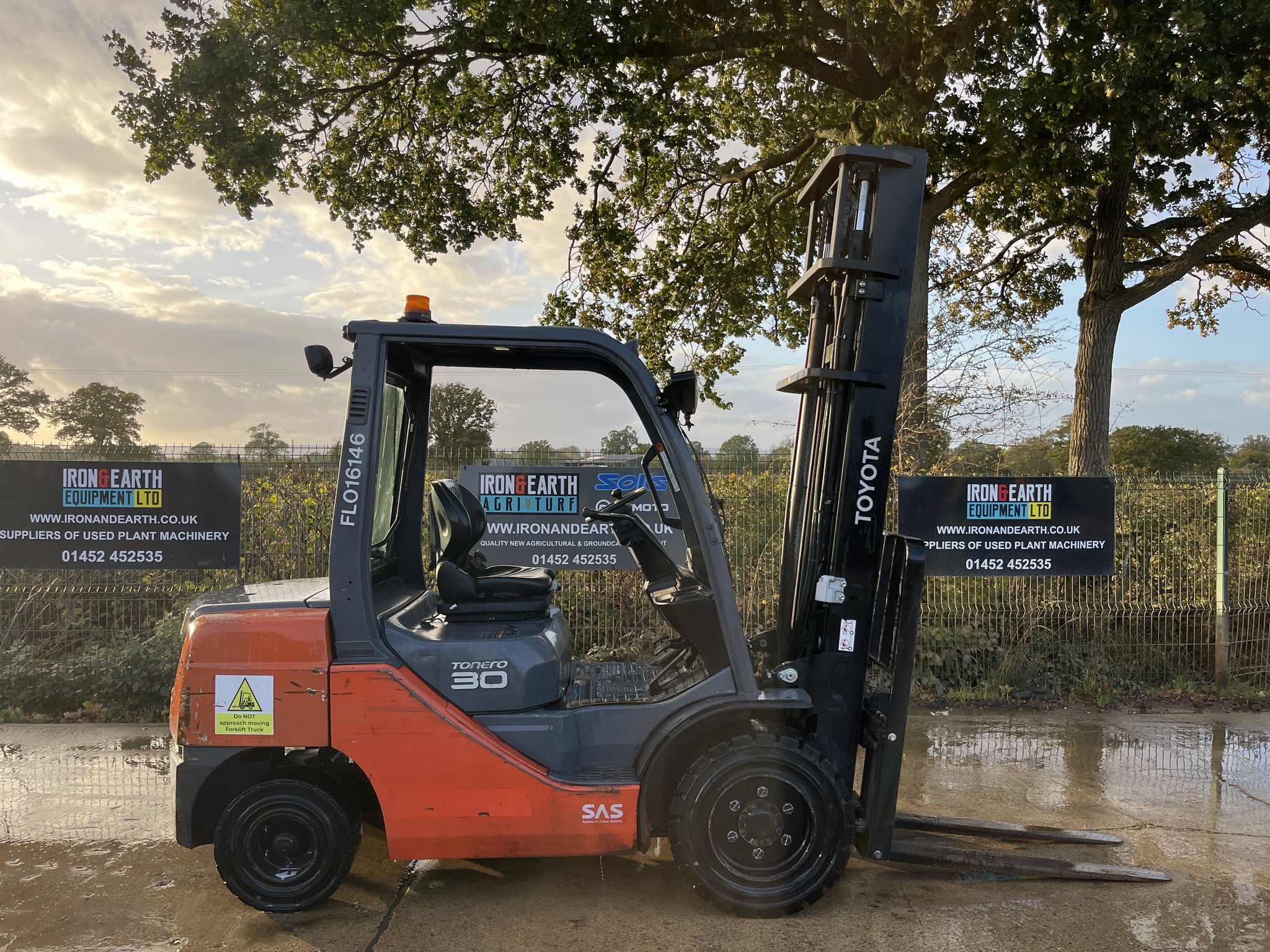 2016 Toyota 02-8FDF30 3 tonne Forklift Truck. With 8,383 Hours. Lift Height 4.5m, 3 Tonne Max Capacity, Duplex Mast, Side Shift, Amber Site Beacon. Supplied With Pallet Forks. Delivery available.