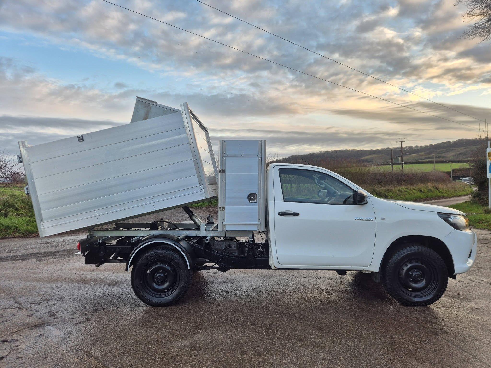 2018 Toyota Hilux Arb Tipper Truck. 66,297 Miles. Euro 6. 2.4 D-4D Diesel. Manual. 4WD. 2 Door. 2 Seats. Service History. New Alloy Tipping Body. Toolbox. Aircon. Bluetooth. Multi-function Steering Wheel. Free 12 months AA Breakdown Cover. Nationwide delivery available. Part exchange considered.