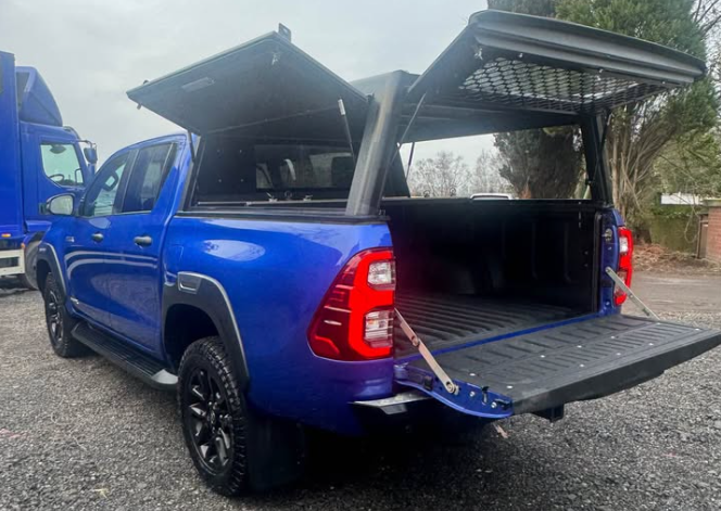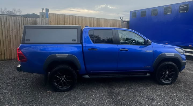 2022 Toyota Hilux Invincible X Pickup Truck. 53,112 Miles. 2.8 Toyota bombproof 204hp Diesel engine. Automatic transmission. 4x4. With Canopy and Load Liner. Toyota Manufacturers Warranty (10 years or 100k miles). Rear Canopy with Side Opening Doors and Rear.  Bushtech Canopy. Rear upgraded Bumper GOBI-X. Full Leather Seats. Heated Seats. SatNav. DAB Radio. Hands Free. USB and 12v Sockets. 90% Tyres all round. Viewing and test drive welcome. Located Manchester. Delivery available.