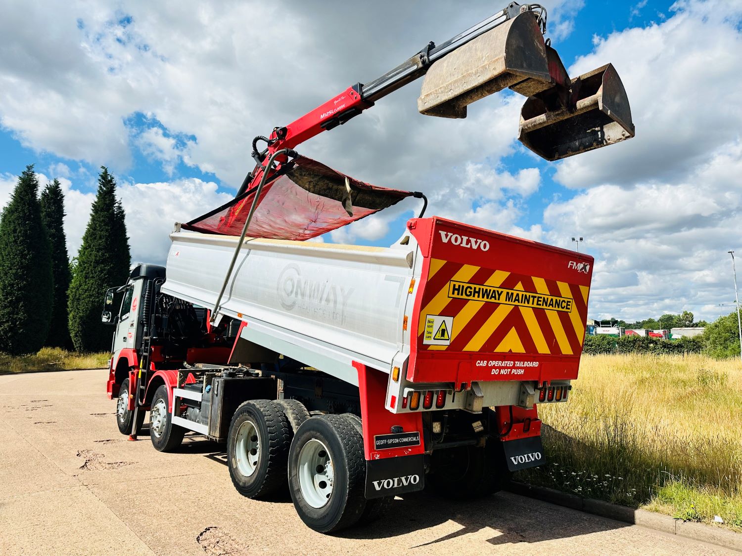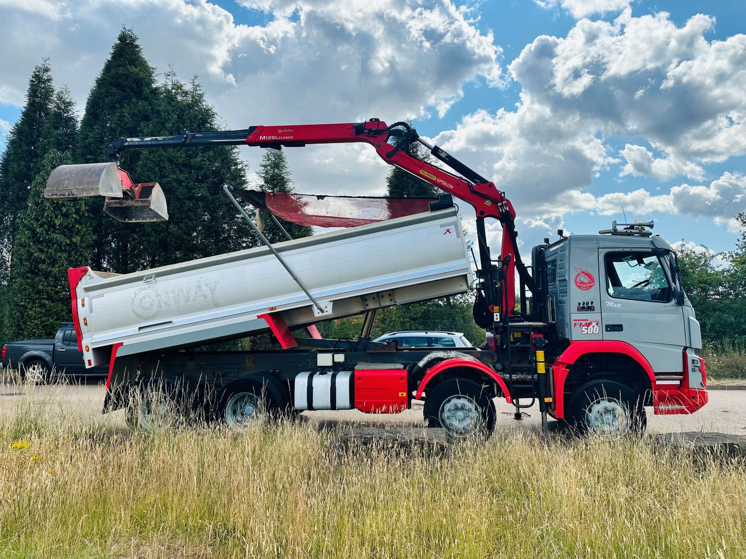 2019 VOLVO FMX 500 TIPPER LORRY WITH CRANE AND GRAB. 200,000 MILES. EURO 6, 8X4 TIPPER GRAB, EPSILON M125L CRANE, 2 EXTENSIONS, HEAVY DUTY ALLOY BODY WITH LINER, UNDERFLOOR TIPPING GEAR, SHEET, AUTO TAILGATE, KELSA LIGHT BARS, BEACONS, AIR HORNS, SUN VISOR, SUN ROOF, LIGHT GUARDS, DAY CAB, I SHIFT GEARBOX, HALF LEATHER, CAMERA, 4 STAGE RETARDER,SWC, CRUISE CONTROL, TESTED OCTOBER 2025.